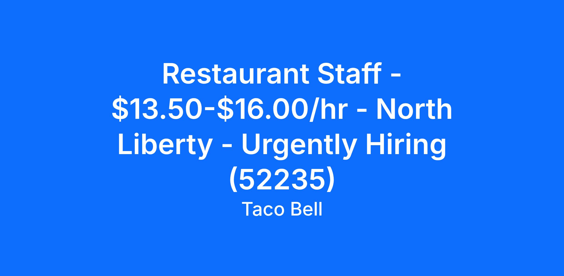 Restaurant Staff - $13.50-$16.00/hr - North Liberty - Urgently Hiring (52235)