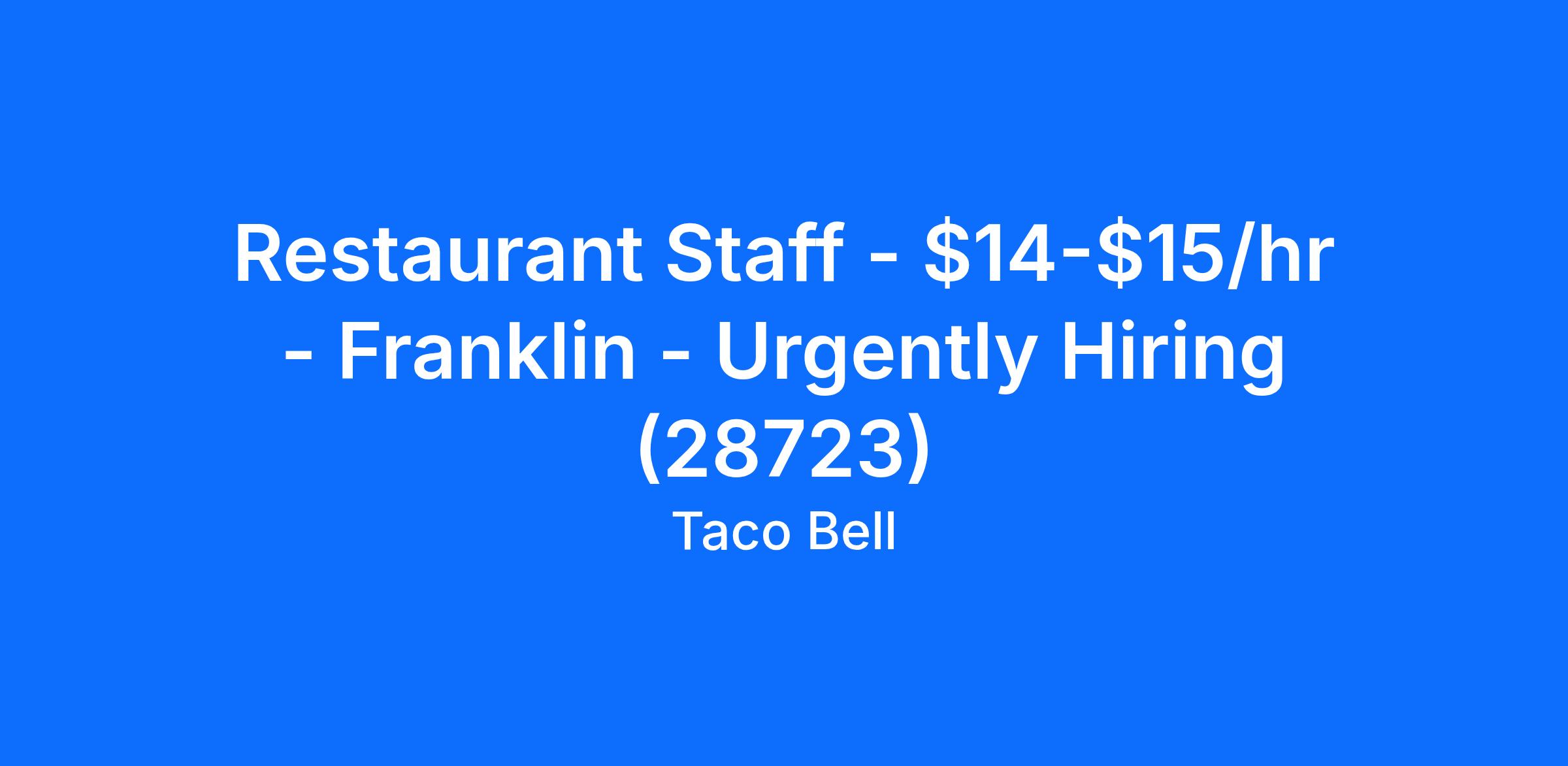 Taco Bell - Franklin is looking for a full time or part time Restaurant Staff team member to join our team in Franklin, NC. The Restaurant Staff team member is responsible for customer service and commitment to excellence through meeting or exceeding hospitality and service standards.