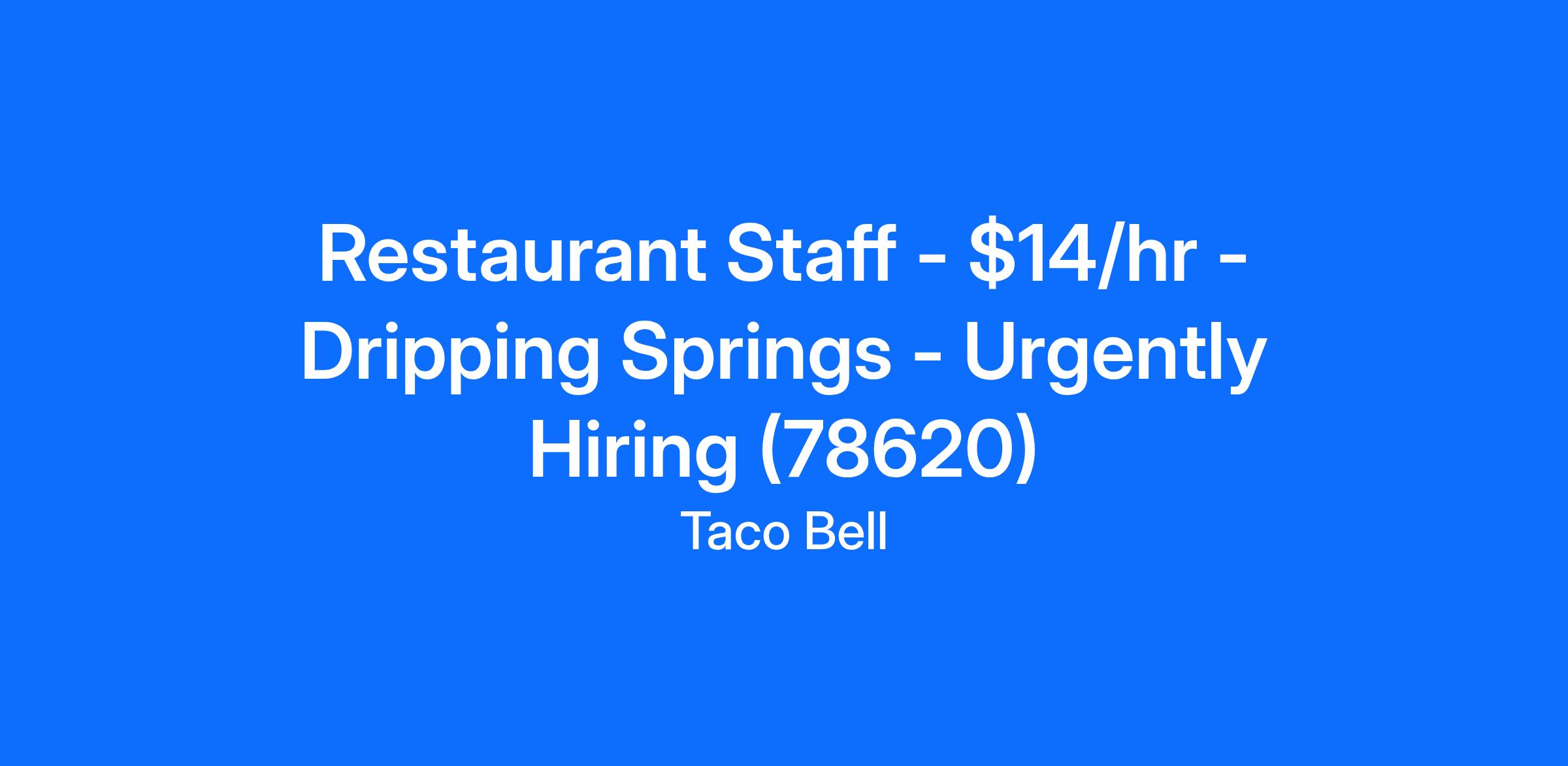 Restaurant Staff - $14/hr - Dripping Springs - Urgently Hiring (78620)