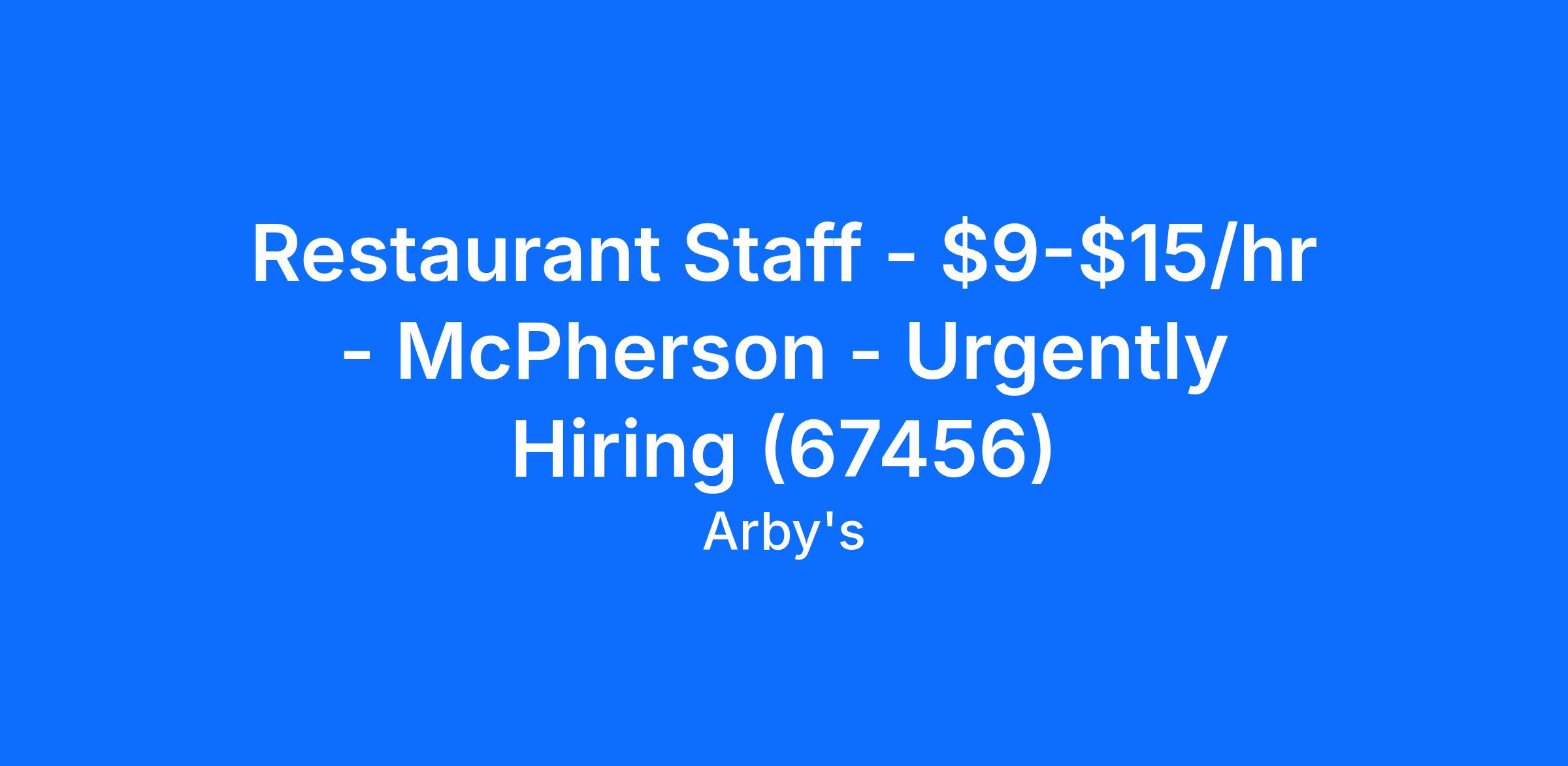 We look forward to seeing you for an interview for our full time or part time Restaurant Staff role at Arby's -McPherson soon!