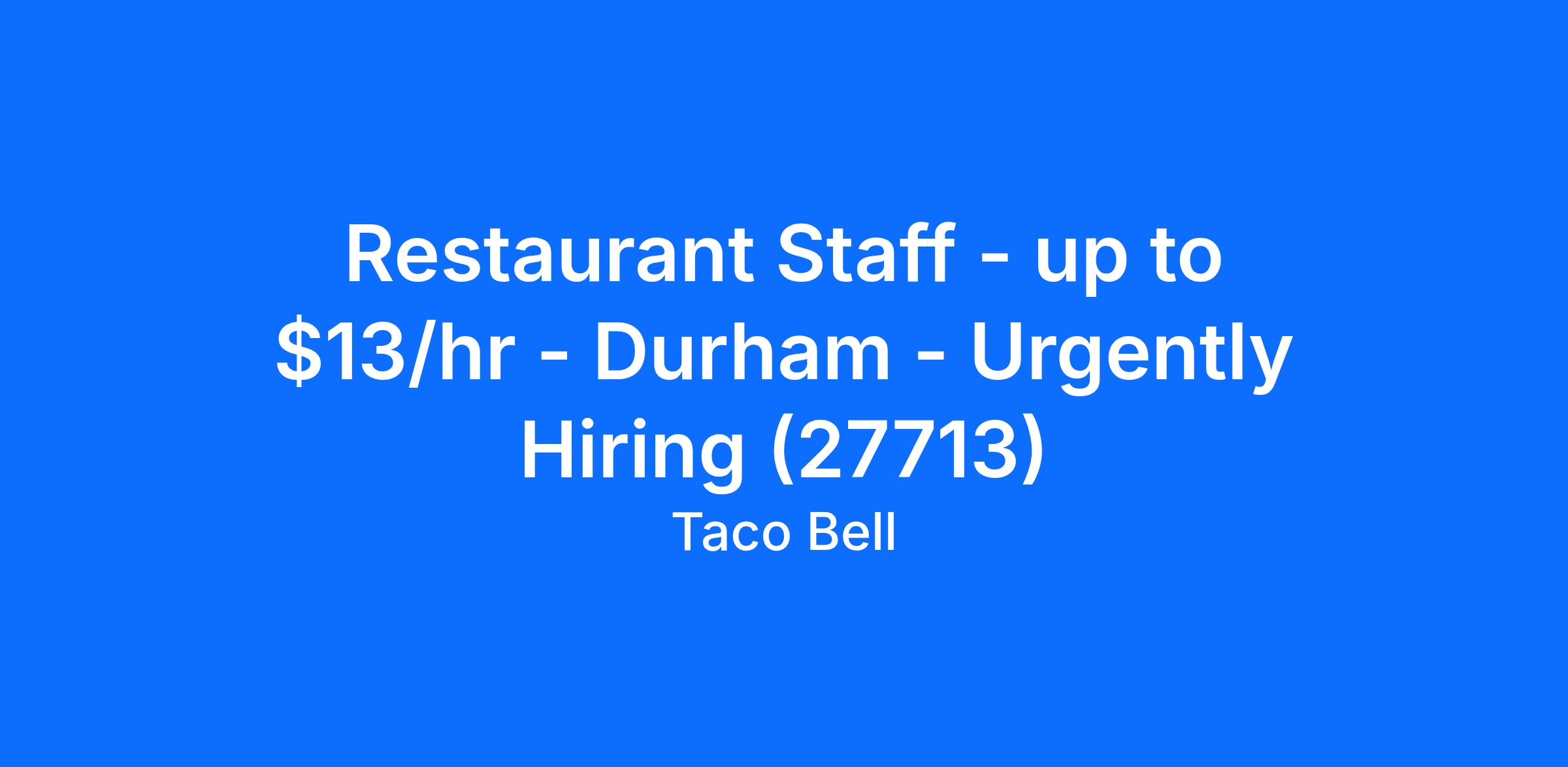 Restaurant Staff - up to $13/hr - Durham - Urgently Hiring (27713)