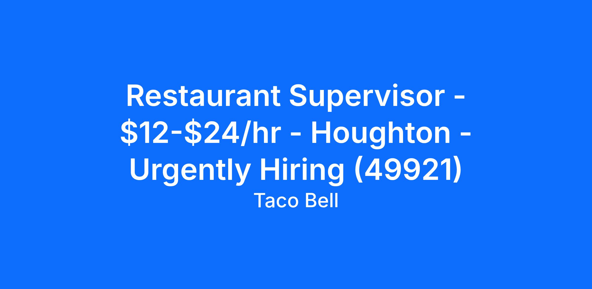 Restaurant Supervisor - $12-$24/hr - Houghton - Urgently Hiring (49921)