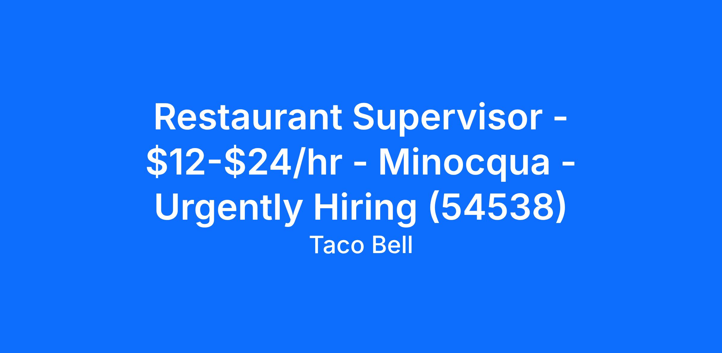 Taco Bell - Minocqua is currently hiring a full time or part time Restaurant Supervisor for our Minocqua, WI location. A Restaurant Supervisor should not only supervise their team but lead it to acheive their goals. A Restaurant Supervisor will assist in the planning and management at Taco Bell - Minocqua in order to achieve customer satisfaction, quality service, compliance with store policies all while meeting and/or exceeding financial goals. Applicants for this role should have effective verbal and written communication skills.
