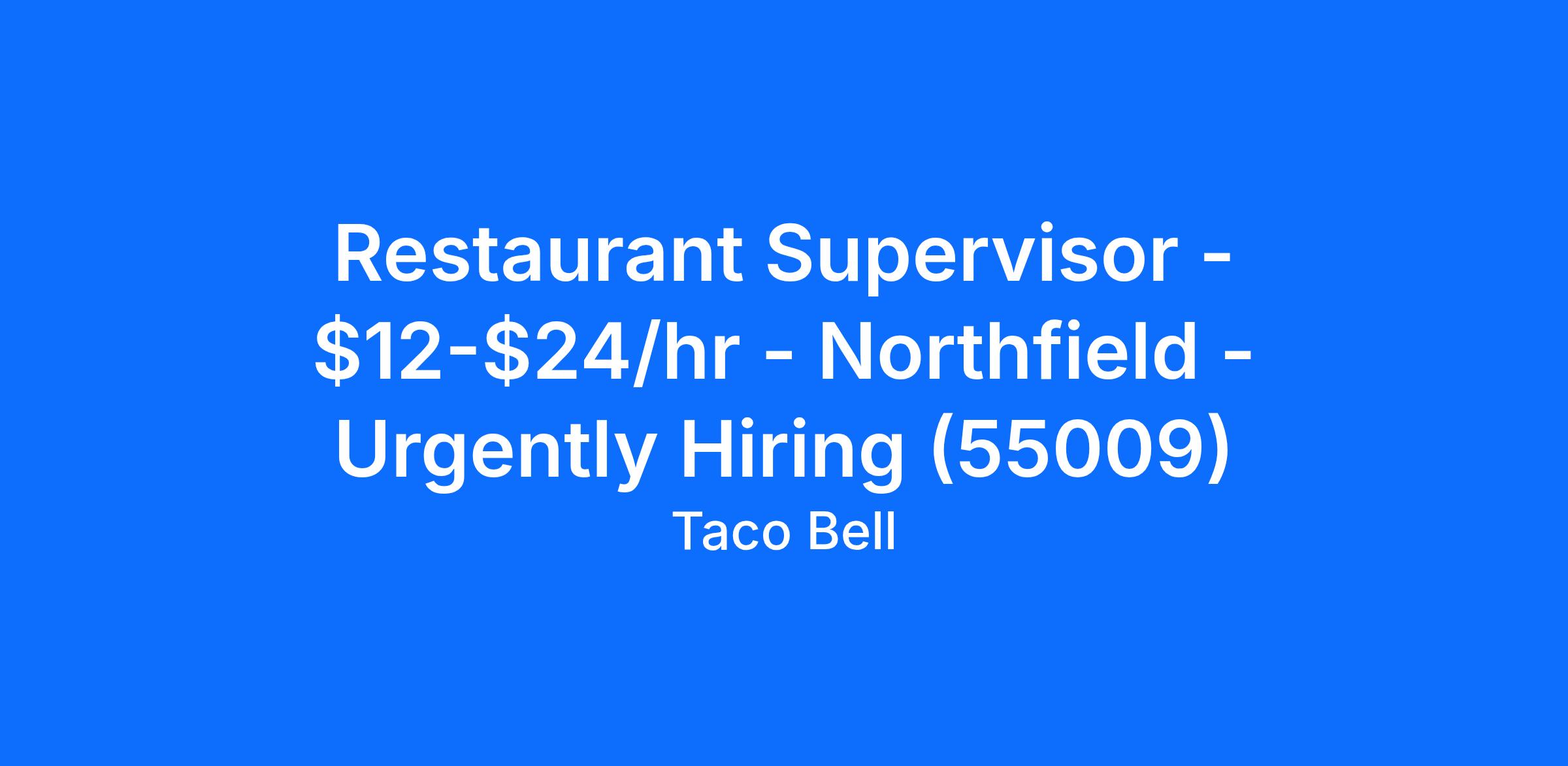 Restaurant Supervisor - $12-$24/hr - Northfield - Urgently Hiring (55009)