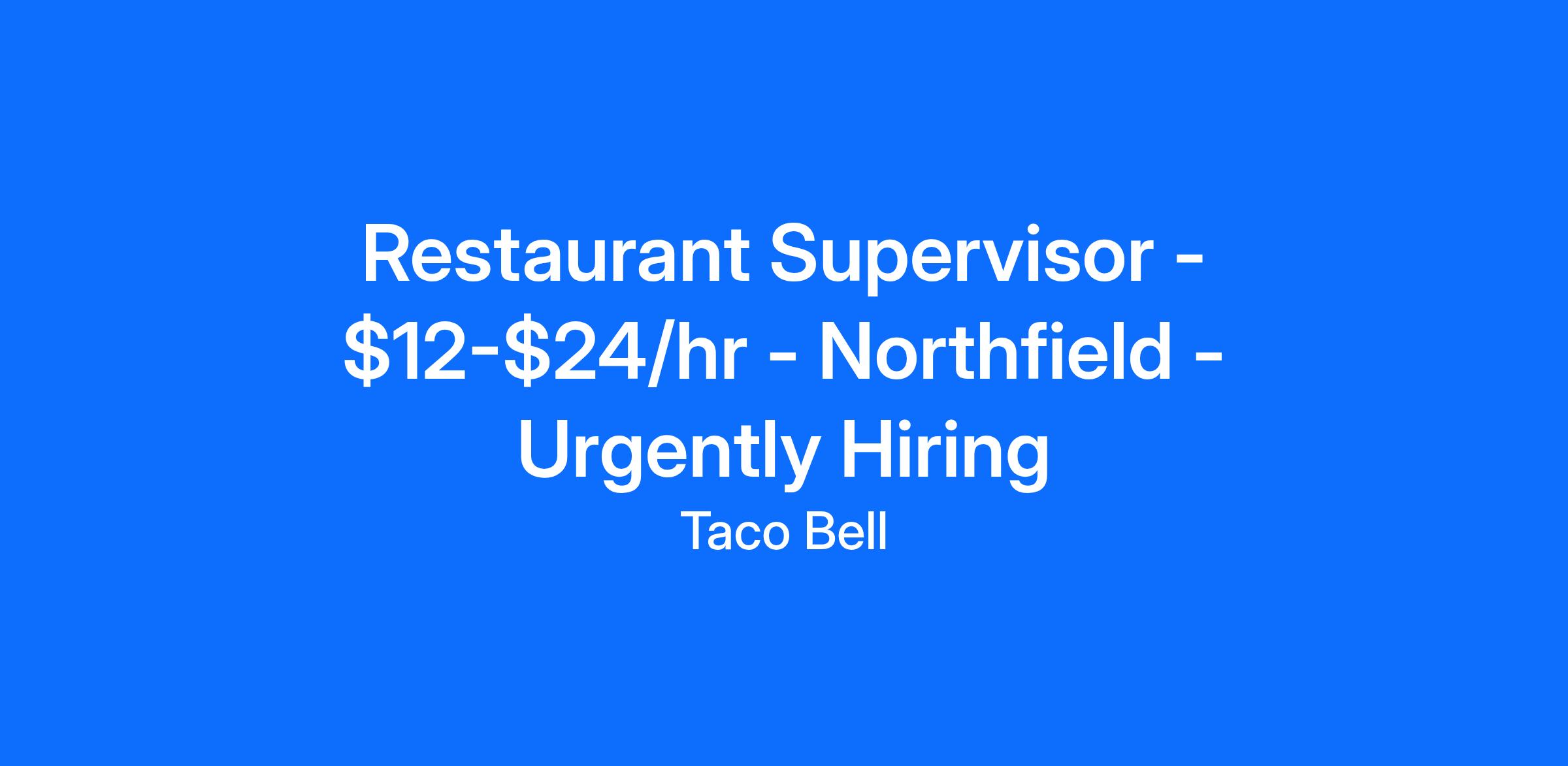 Restaurant Supervisor - $12-$24/hr - Northfield - Urgently Hiring