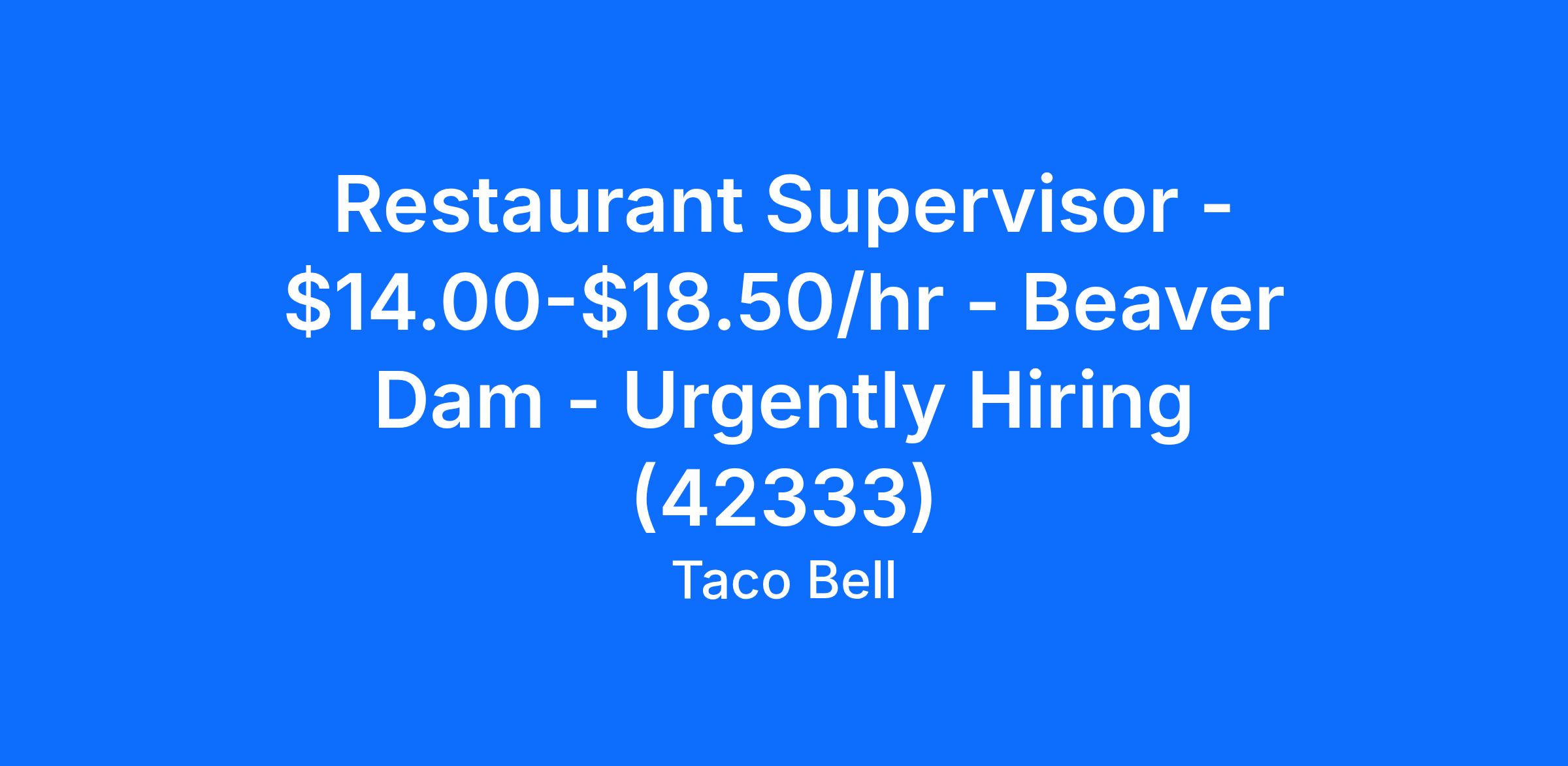 Restaurant Supervisor - $14.00-$18.50/hr - Beaver Dam - Urgently Hiring (42333)
