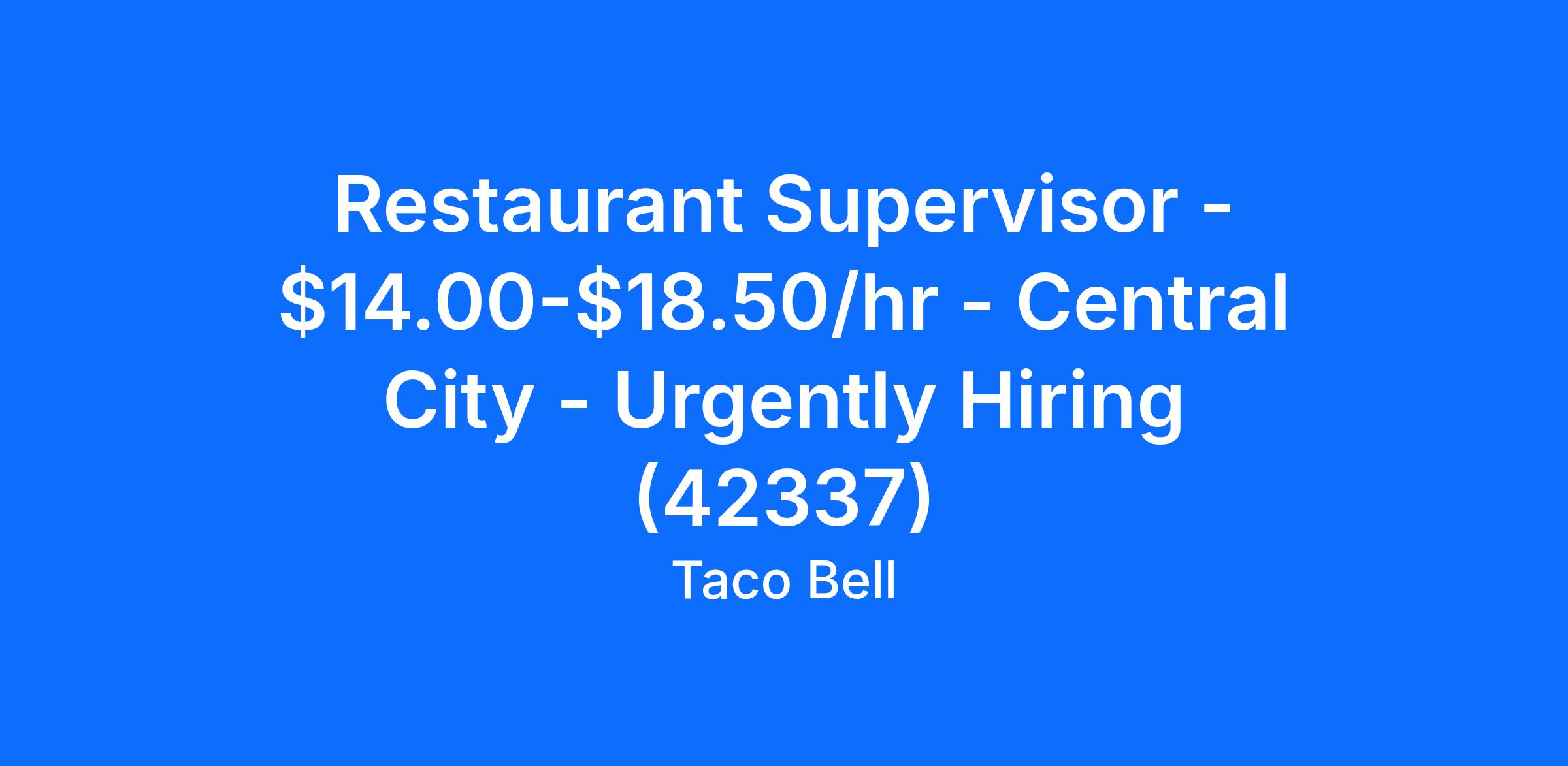 Restaurant Supervisor - $14.00-$18.50/hr - Central City - Urgently Hiring (42337)