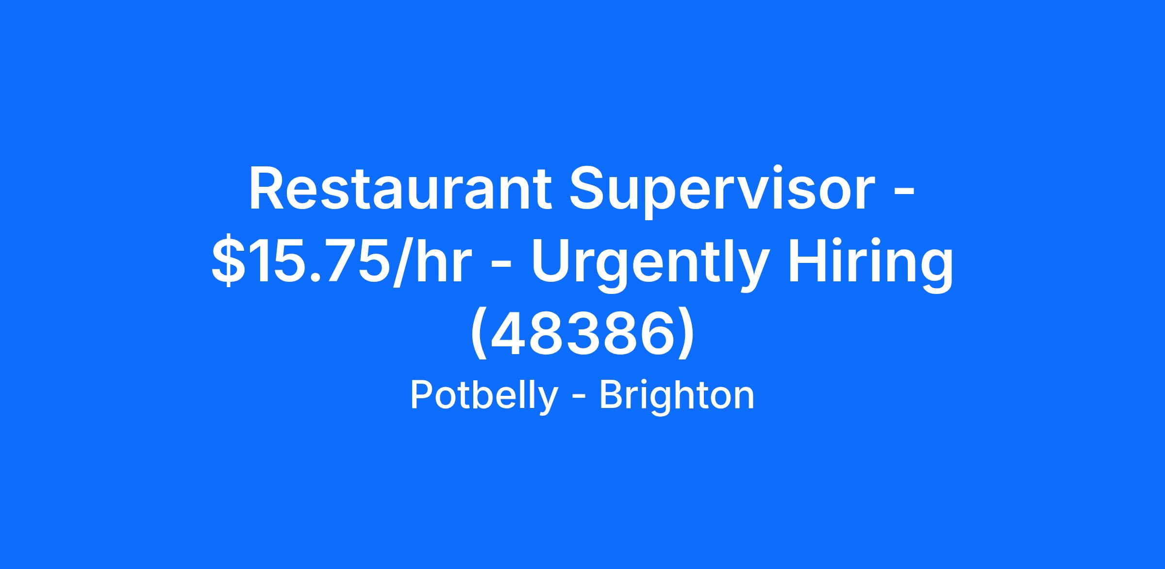 Potbelly - Brighton is currently hiring a full time or part time Restaurant Supervisor for our Brighton, MI location. A Restaurant Supervisor should not only supervise their team but lead it to acheive their goals. A Restaurant Supervisor will assist in the planning and management at Potbelly - Brighton in order to achieve customer satisfaction, quality service, compliance with store policies all while meeting and/or exceeding financial goals. Applicants for this role should have effective verbal and written communication skills.