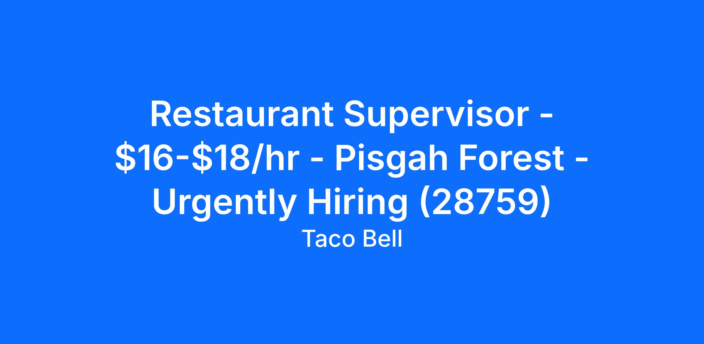 Thanks for your interest in this role. We hope to meet you soon. Taco Bell - Pisgah Forest is hiring immediately, so please apply today!