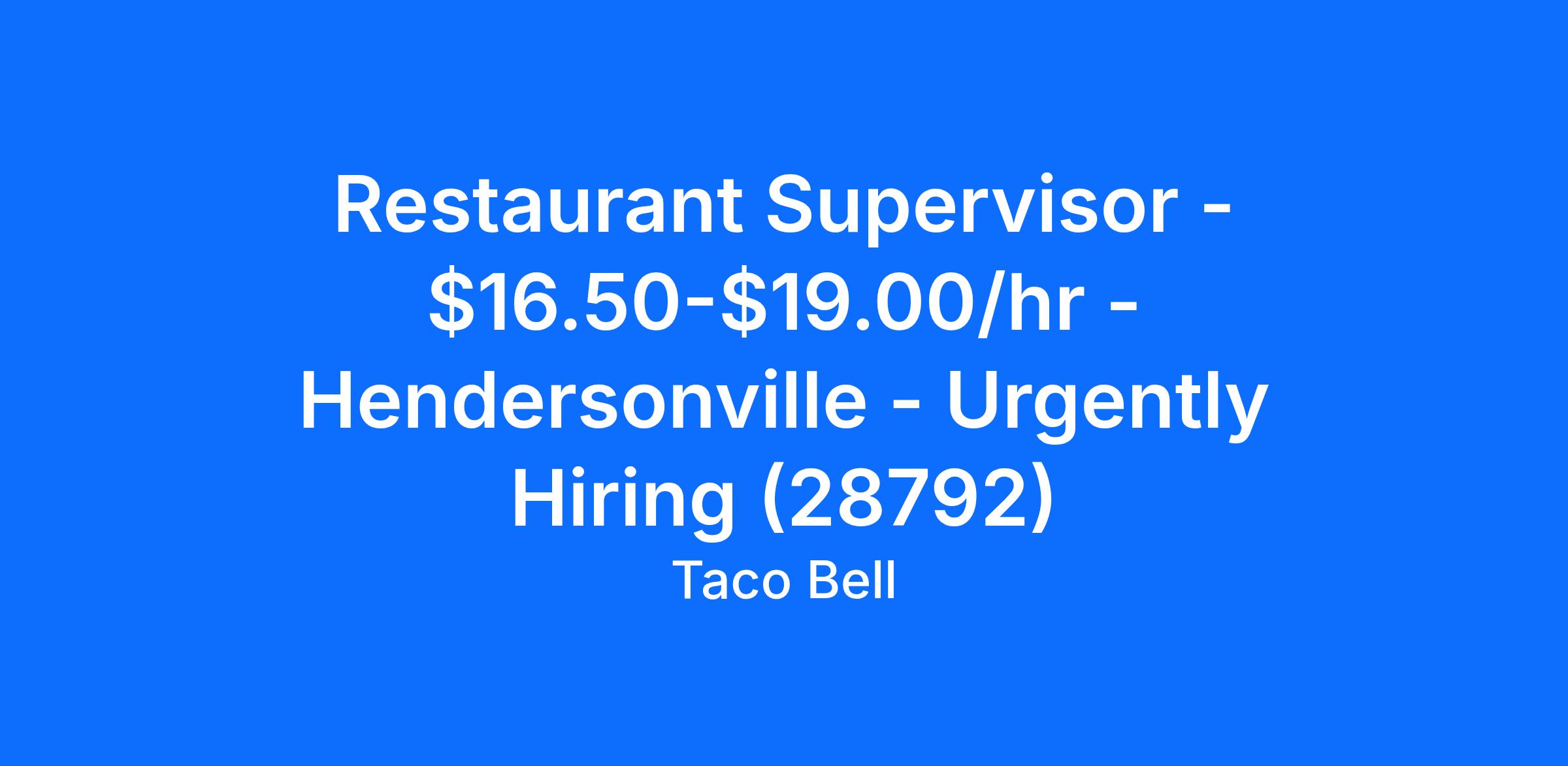 Thanks for your interest in this role. We hope to meet you soon. Taco Bell - Hendersonville is hiring immediately, so please apply today!