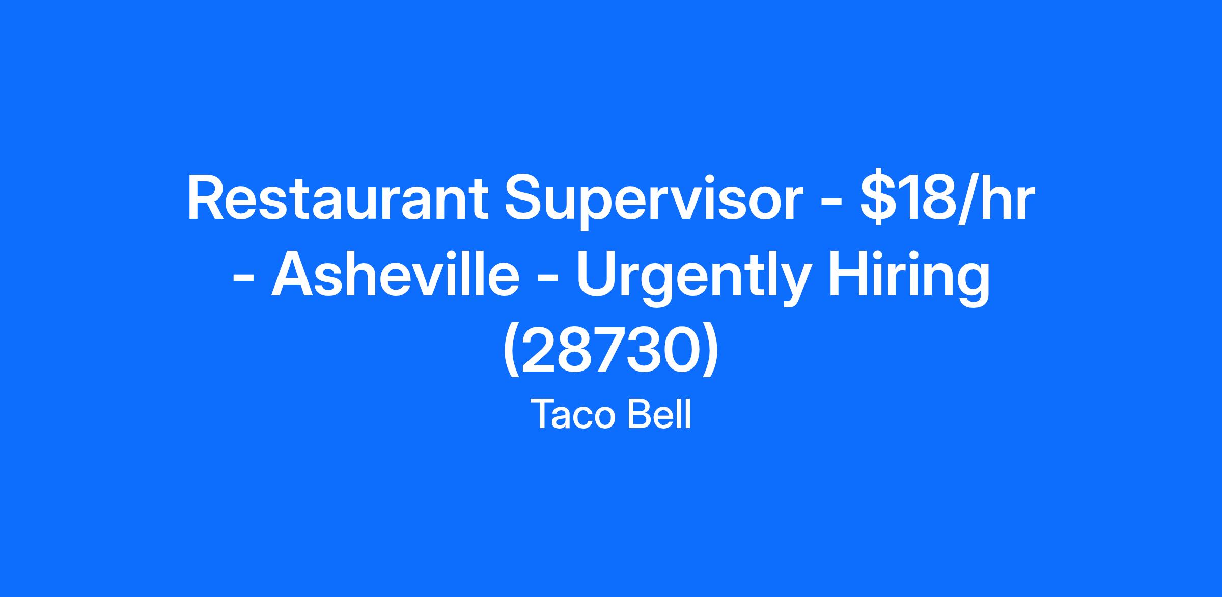 Restaurant Supervisor - $18/hr - Asheville - Urgently Hiring (28730)