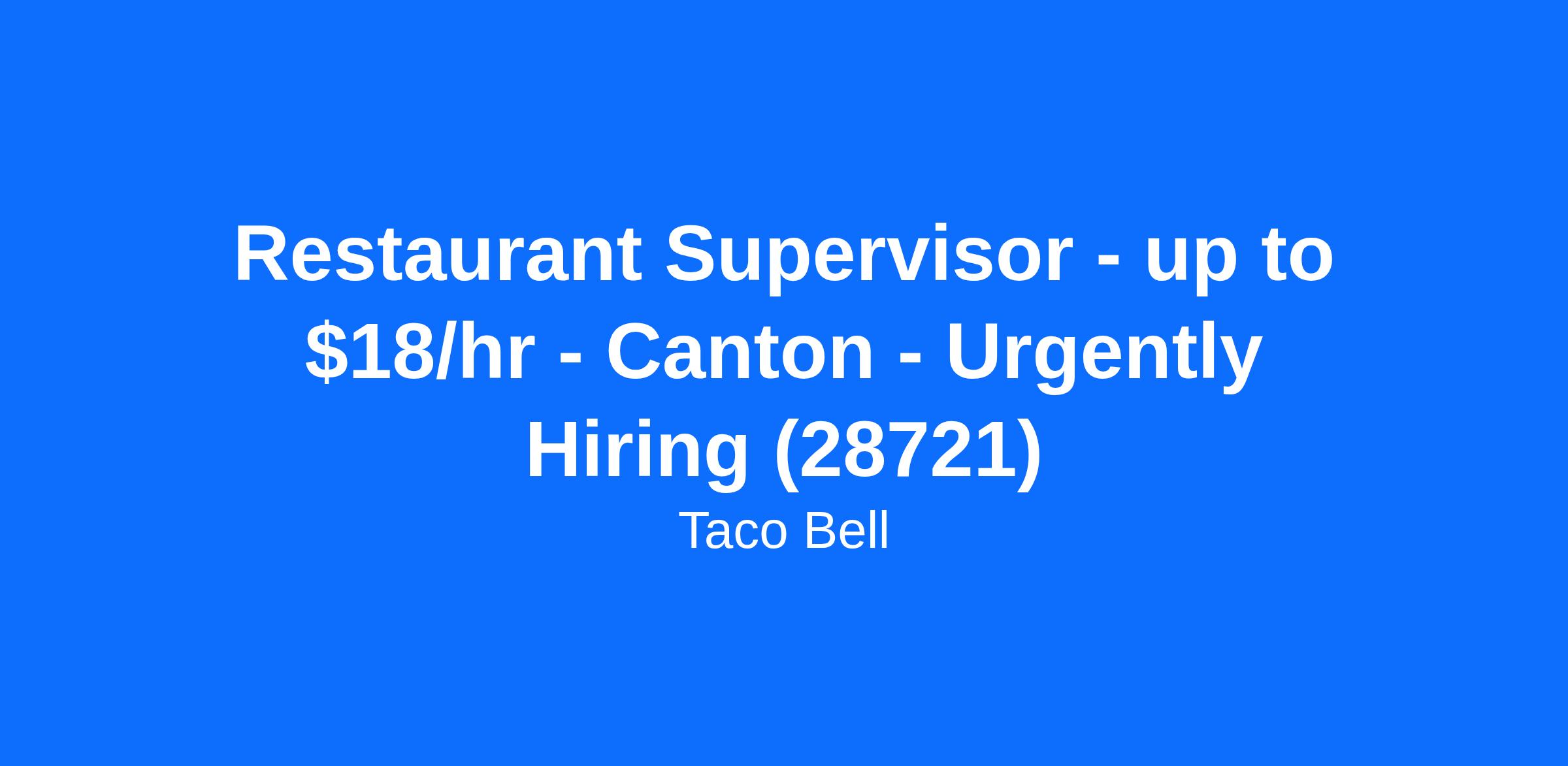 Thanks for your interest in this role. We hope to meet you soon. Taco Bell - Canton is hiring immediately, so please apply today!