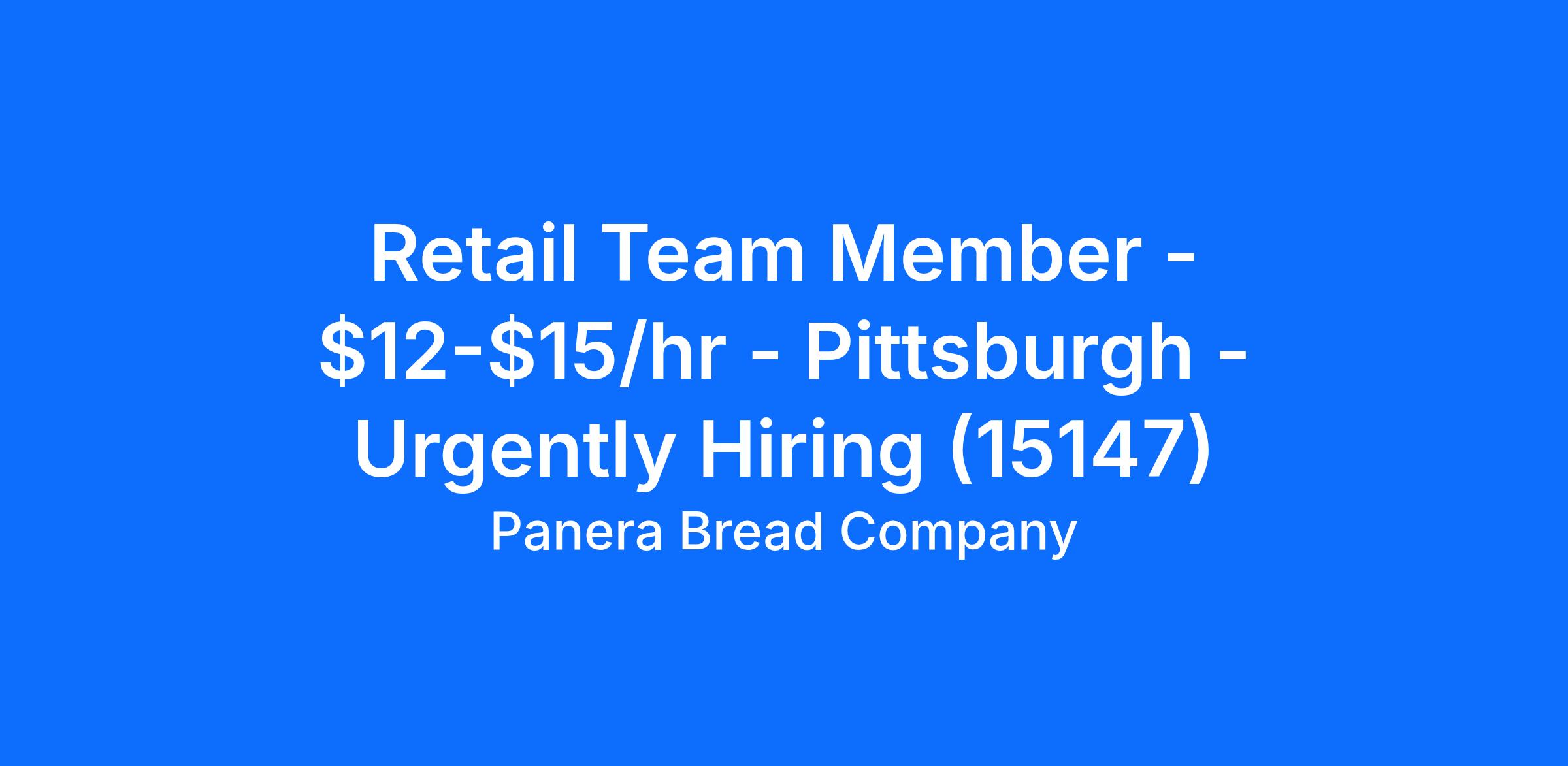 Retail Team Member - $12-$15/hr - Pittsburgh - Urgently Hiring (15147)