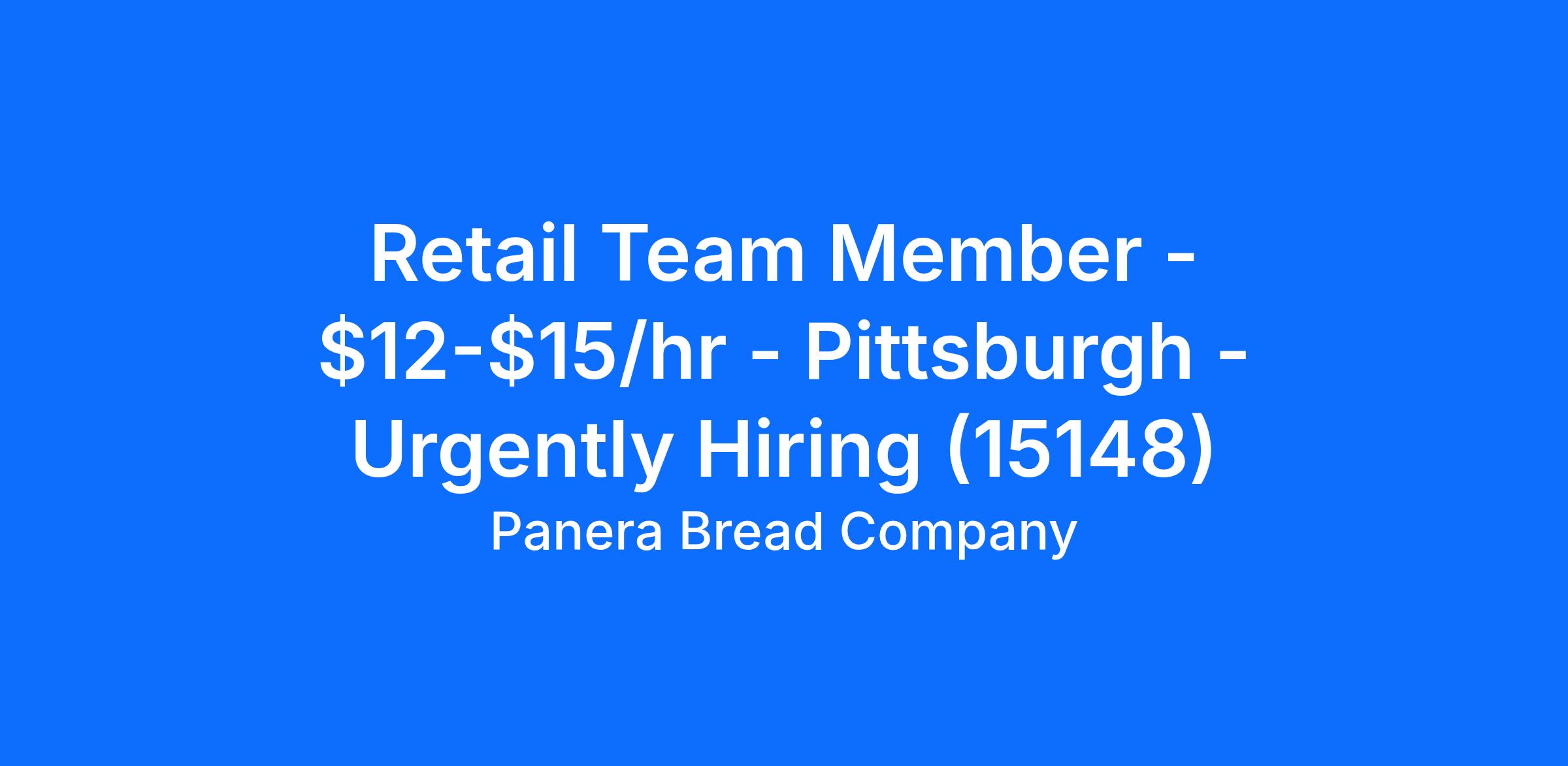 Retail Team Member - $12-$15/hr - Pittsburgh - Urgently Hiring (15148)