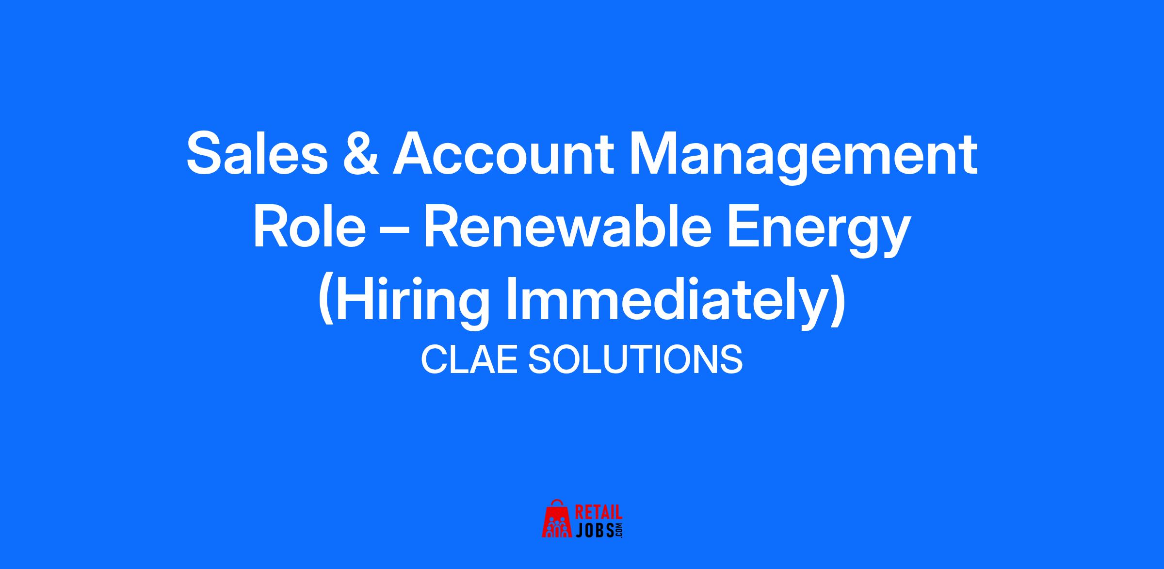 Sales & Account Management Role – Renewable Energy (Hiring Immediately)