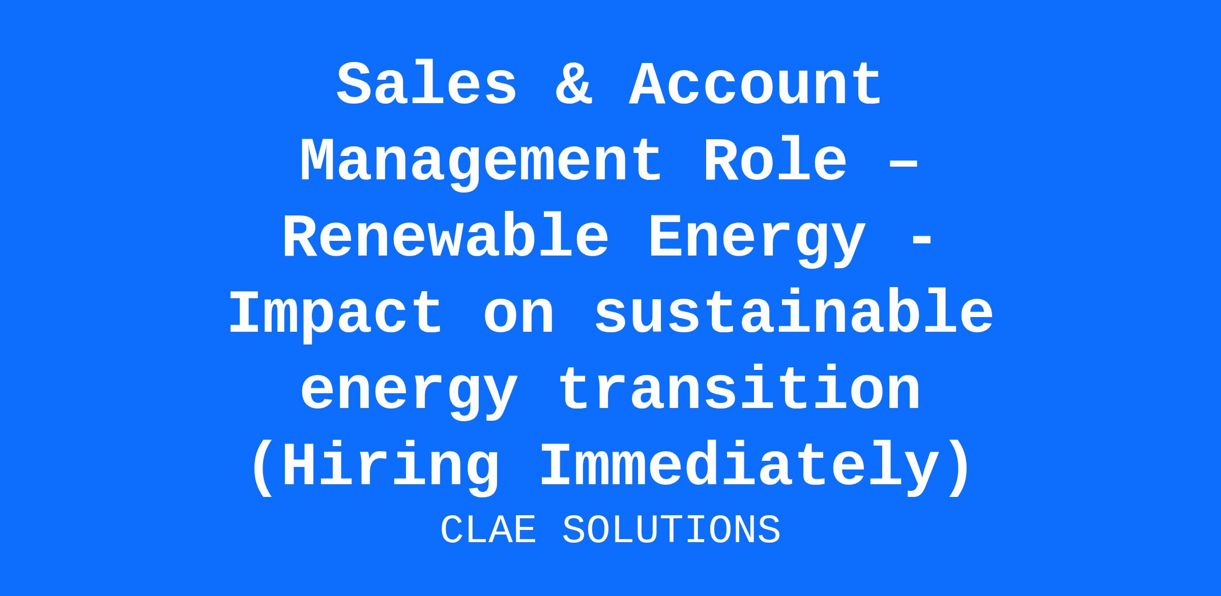 Sales & Account Management Role – Renewable Energy - Impact on sustainable energy transition (Hiring Immediately)