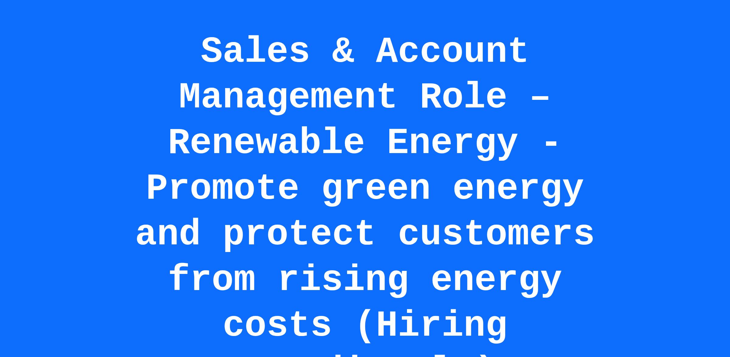 Sales & Account Management Role – Renewable Energy - Promote green energy and protect customers from rising energy costs (Hiring Immediately)