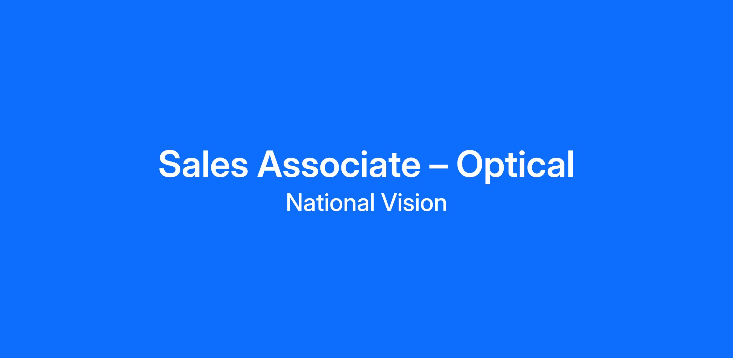 Join our dynamic sales team at National Vision as a Sales Associate, where your passion for people and community comes to life through excellent customer service and expert guidance in eyewear selection. You will play a critical role in ensuring that every customer finds the perfect pair of glasses for them. By providing excellent customer service, you will also be contributing to your personal and team goals.