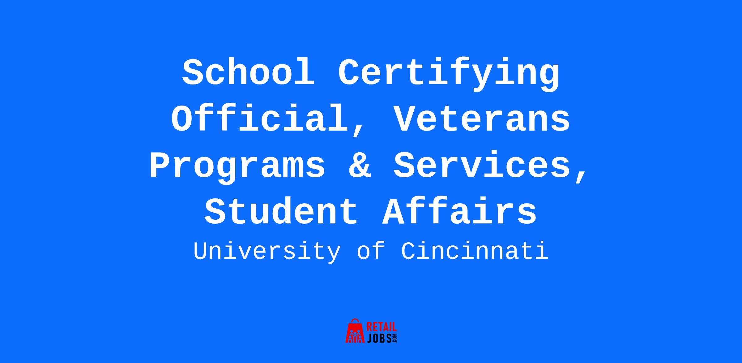 *You are invited to submit an application to be considered for one of multiple vacancies of the same position.* *About The College*The University of Cincinnati is proud to count more than 2,000 military-affiliated students among its ranks, including active-duty military, members of the National Guard and the Reserves, veterans, and family members. As a proud Yellow Ribbon partner school, UC adheres closely to Department of Veterans Affairs principles of excellence in providing a high-quality educational experience tailored to the unique needs of veteran students. *Job Overview*Serve as the Certifying Official for Veteran Affairs students at the University of Cincinnati. Provide information and service to students and staff visiting the Veterans Programs & Services. *Essential Functions* Provide specialized customer service to members of the various branches of the United States Military, Veterans, and their eligible dependents. Relate relevant and accurate information in-person, electronically and by telephone for all inquiries.Advocate for students by providing information about the university and assisting the VA regional offices in the administration of programs and certification of Veteran students enrolled.Resolve problems regarding eligibility and payment of VA benefits. Submit and update enrollment certifications, process enrollment information in the university's student information and the VP.:s information systems. Coordinate various VA reports.Provide current and accurate information to students and staff related to G.I. Bill benefits and appropriate financial aid programs; assist students in the application process for benefits and completion of eligibility requirements.Communicate with all departments about changes to federal and state regulations and university policies pertaining to Veteran students.Maintain the university's policies and procedures manual and catalog to effectively communicate guidelines that apply to Veteran students concerning eligibility, academic progress and award amount.Enter Veteran student records and maintain accuracy of the university's database. Work closely with Financial Aid, Student Accounts and the Cashier's Office to ensure students' financial records are accurate. Maintain files for all Veteran students.Maintain knowledge and adhere to stated Department of Veterans Affairs, government and financial services policies and procedures, and applicable federal and state regulations.In the absence of the Program Manager and/or the Program Coordinator, supervise Veteran Work Study student(s).Perform related duties based on departmental need. This job description can be changed at any time.*Required Education* * Bachelor's Degree. * Five (5) years of relevant work experience and/or other specialized training can be used in lieu of education requirement. *Required Experience*One (1) year of related experience. *Additional Qualifications Considered*• Strong organizational skills. • Demonstrated work experience in a fast paced, high volume work environment. *Physical Requirements/Work Environment Office environment/no specific unusual physical or environmental demands. * Compensation and Benefits*UC offers an exceptional benefits package designed to support your well-being, financial security, and work-life balance. Eligibility varies by position and FTE. Highlights include: *Comprehensive Tuition Remission* UC provides tuition remission for you and your eligible dependents, covering tuition costs for nearly all undergraduate and graduate programs offered by the university. Robust Retirement Plans As a UC employee, you won’t contribute to Social Security (except Medicare). Instead, you’ll choose between state pension plans (OPERS, STRS) or an Alternative Retirement Plan (ARP), with UC contributing 14–18% of your salary based on position. Real Work-Life Balance UC prioritizes work-life balance with a generous time-off policy, including: Vacation and sick time 11 paid holidays and additional end-of-year paid time off (Winter Season Days) 6 weeks of paid parental leave for new parents Additional Benefits Include: Competitive salary range of $42,000 -$44,000 based on experienceComprehensive health coverage (medical, dental, vision, prescription)Flexible spending accounts & wellness programsProfessional development & mentorship opportunities For questions about the UC recruiting process or to request accommodations with the application, please contact Human Resources at [jobs@uc.edu](mailto:jobs@uc.edu). *Equal Opportunity Employer. Building a workplace where all qualified applicants will receive consideration for employment, including Individuals with Disabilities and Protected Veterans.* REQ: 99988