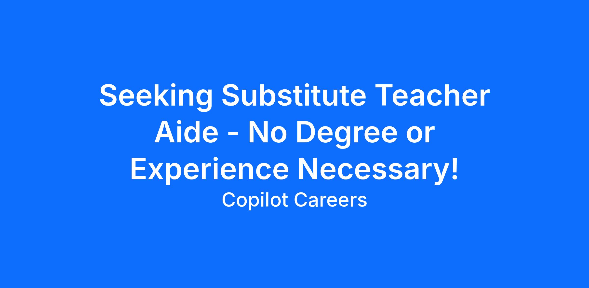 Seeking Substitute Teacher Aide - No Degree or Experience Necessary!