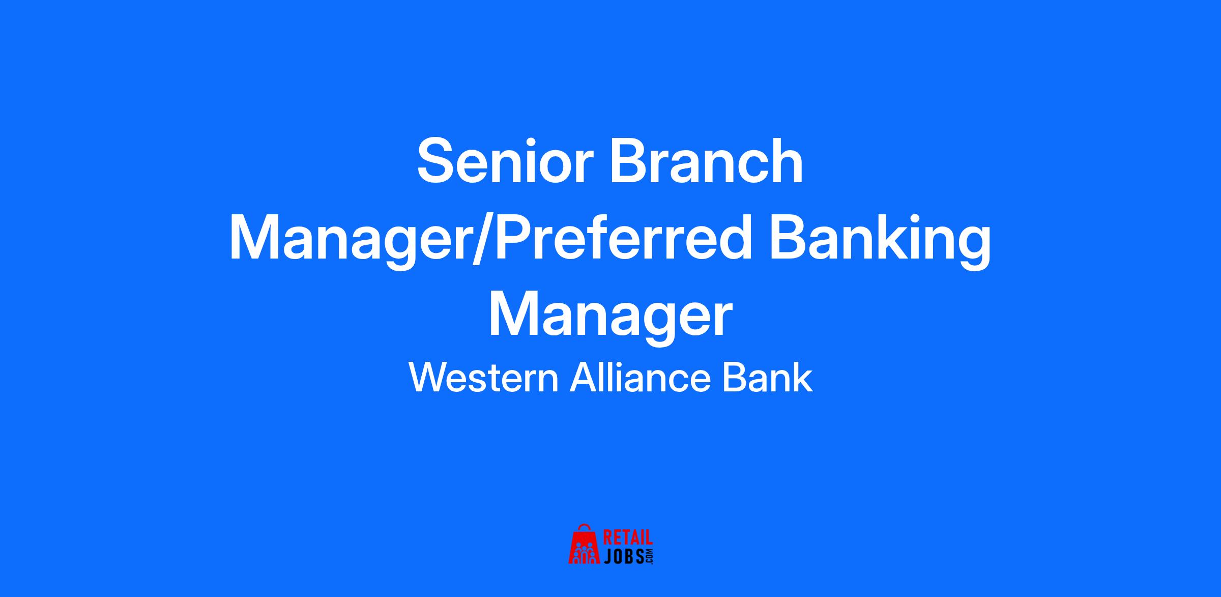 Senior Branch Manager/Preferred Banking Manager Join to apply for the Senior Branch Manager/Preferred Banking Manager role at Western Alliance Bank . Job Title Senior Branch Manager/Preferred Banking Manager Location San Francisco - Montgomery Overview Be a Preferred Banking Senior Manager responsible for leading and coaching a team within your assigned area and geography, executing the full client life cycle for clients. The team will promote the department's sales, service, operations philosophy through client interactions and provide expert guidance on products and services such as treasury management, loans, commercial and personal accounts. Collaborate with internal departments and resources to drive client satisfaction and ensure team training and competency for career growth. What You"ll Do Lead and be subject matter expert for the Preferred Banker team within your assigned geography, responding to complex client requests to execute the complete client life cycle and achieve client satisfaction. Drive opportunities to promote Bank products through analysis of client patterns and needs. Oversee and manage distribution of work for the designated team, facilitate cross-training opportunities, and provide management reporting on production, turnaround times, and other key data points. Ensure the team meets service level standards including sales, customer service, turnaround time, risk management, regulatory compliance, audit soundness, productivity and efficiency. Monitor individual team member performance to support career progression and ensure optimal client support for inquiries or requests. Create and execute strategic business initiatives driven by data analytics, under the direction of the Preferred Banking Director. This may involve change management with other internal departments and keeping up-to-date with Bank products. Lead and develop a team; responsible for hiring, coaching, performance management, training and development. What Youll Need 9 years of related experience in Treasury Management Sales, Treasury Management Service, Branch Banking Operations or similar field. Bachelor's degree or equivalent experience required; bachelor's degree in related field preferred. Previous leadership experience required. Advanced to expert knowledge of general banking operations, including deposit operations, loan administration, treasury management and/or other commercial banking products and services. Advanced to expert knowledge of applicable regulatory and legal compliance obligations, rules and regulations, industry standards and practices. Advanced to expert experience in deposits and treasury management products. Excellent speaking and writing communication skills. May require up to 25% travel. Compensation: Salary range for new hires is generally $123,515.00 - $152,578.00 for San Francisco, CA. Salary amount is determined by specific job location. In addition, the role may be eligible for annual bonus/incentives earned and restricted stock. Benefits We offer competitive salaries and benefits including an ownership stake in the company, medical and dental insurance, time off, a 401k matching program, tuition assistance, an employee volunteer program, and a wellness program. You'll have opportunities to bolster your business knowledge and gain hands-on experience in how successful companies operate and manage their finances. About The Company Western Alliance Bank is a wholly owned subsidiary of Western Alliance Bancorporation. Alliance Bank of Arizona, Alliance Association Bank, Bank of Nevada, Bridge Bank, First Independent Bank, and Torrey Pines Bank are divisions of Western Alliance Bank; Member FDIC. AmeriHome Mortgage is a Western Alliance Bank company. Western Alliance Bancorporation is committed to equal employment and will consider all qualified applicants without regard to race, sex, color, religion, age, national origin, marital status, disability, protected veteran status, sexual orientation, gender identity or genetic information. If you are an individual with a disability and require a reasonable accommodation to complete any part of the application process, please email HR@westernalliancebank.com or call 602-386-2488. Western Alliance Bancorporation Note Referrals increase your chances of interviewing at Western Alliance Bank. This job description reflects the responsibilities and requirements of the role as posted and does not imply any guarantees of employment. J-18808-Ljbffr