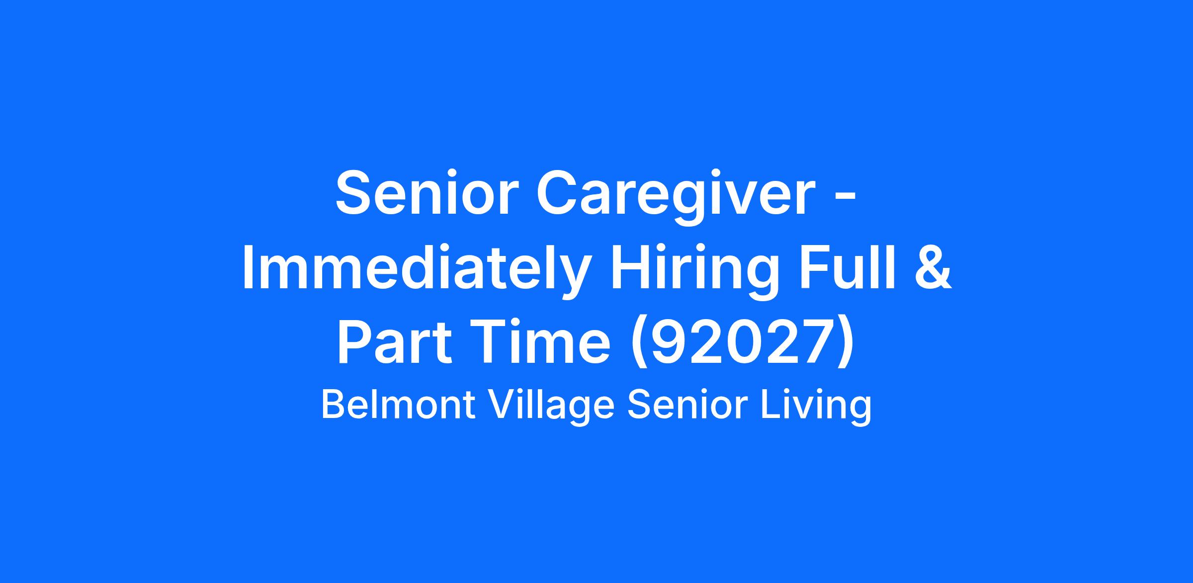 Senior Caregiver - Immediately Hiring Full & Part Time (92027)