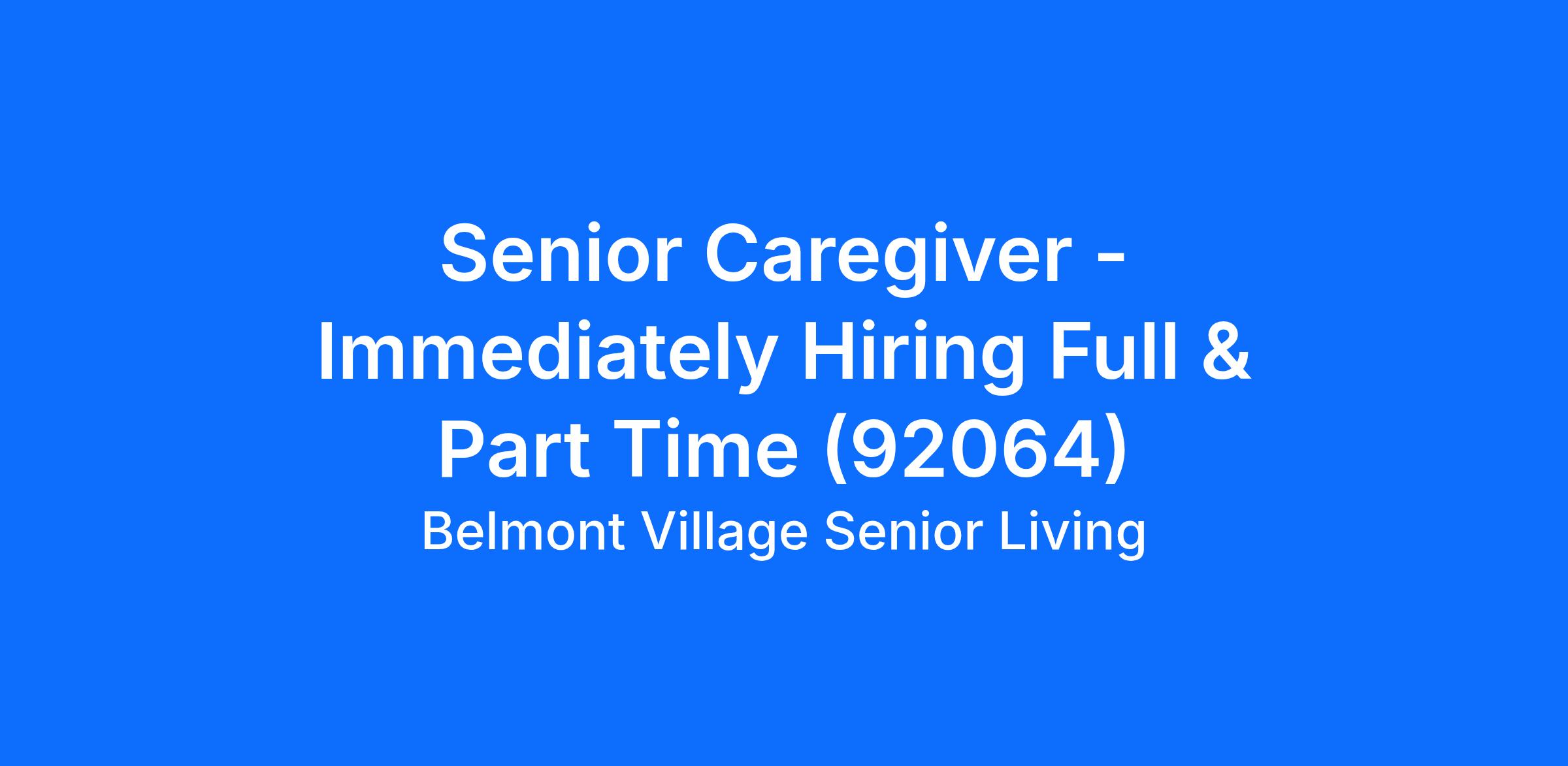 Senior Caregiver - Immediately Hiring Full & Part Time (92064)
