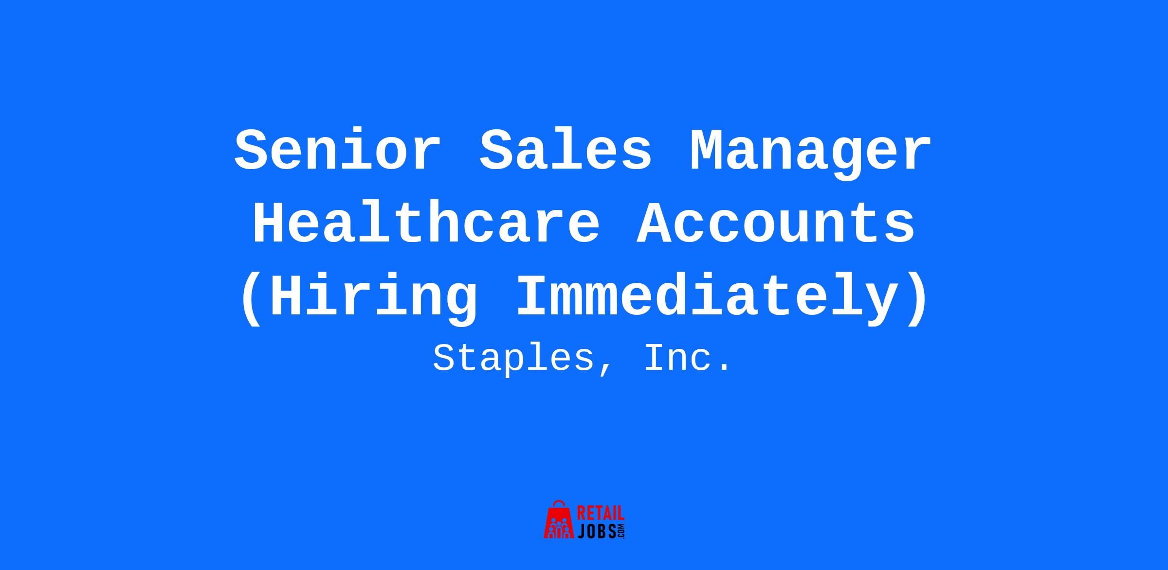 Senior Sales Manager Healthcare Accounts (Hiring Immediately)