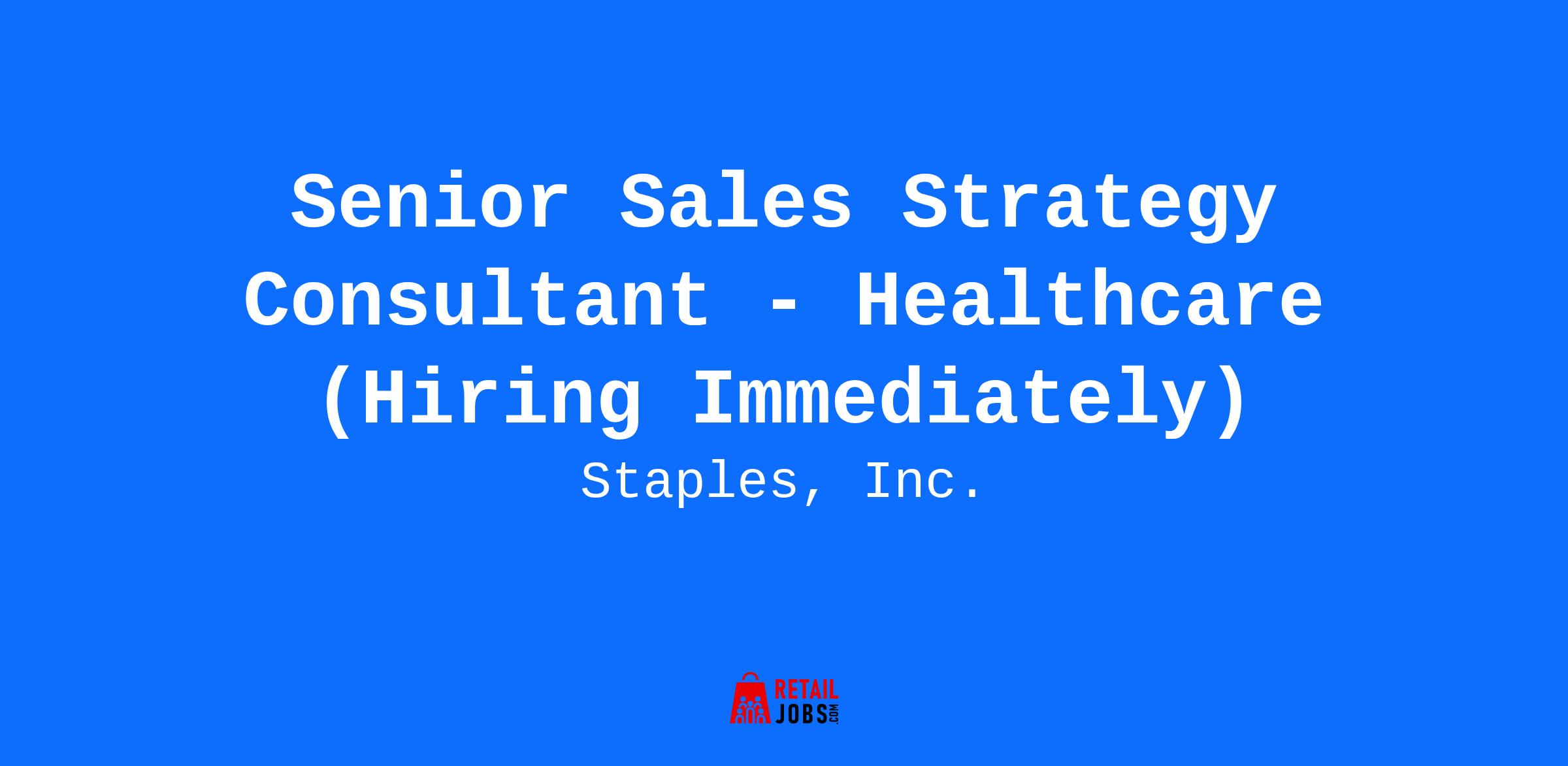 Senior Sales Strategy Consultant - Healthcare (Hiring Immediately)