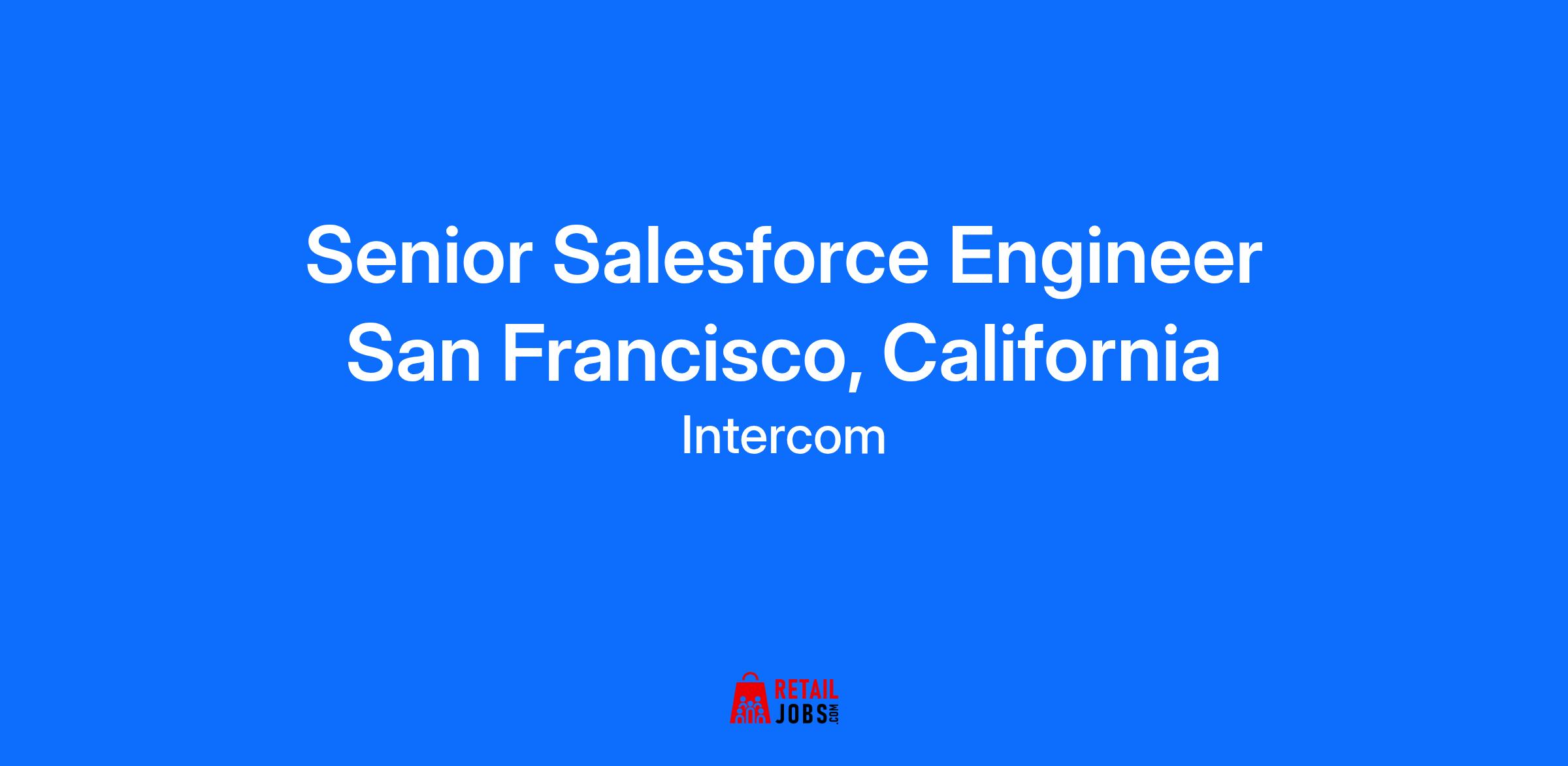 Intercom is the AI Customer Service company on a mission to help businesses provide incredible customer experiences. Our AI agent Fin, the most advanced customer service AI agent on the market, lets businesses deliver always-on, impeccable customer service and ultimately transform their customer experiences for the better. Fin can also be combined with our Helpdesk to become a complete solution called the Intercom Customer Service Suite, which provides AI enhanced support for the more complex or high touch queries that require a human agent. Founded in 2011 and trusted by nearly 30,000 global businesses, Intercom is setting the new standard for customer service. Driven by our core values, we push boundaries, build with speed and intensity, and consistently deliver incredible value to our customers. What's the opportunity? We are looking for a Sr. Salesforce Engineer to join our Got to Market Infrastructure Team. In this role you’ll work closely with partners from our Sales, Marketing, RevOps and engineering teams on building the systems that bring our Go To Market strategy to life. We’re facing exciting scaling challenges as we look to build a world class Salesforce platform that helps in our mission to bring the leading AI Agent to market. What will I be doing? Design scalable and high-performance Go To Market systems that enable Intercom to build a world class Go To Market engine. Lead technical architecture discussions and decisions, ensuring solutions are scalable, maintainable, and integrate seamlessly with existing systems. Grow your team’s capacity by mentoring other engineers and interviewing candidates. This is a chance to be an integral part of building and growing a team. Partnering directly with stakeholders from across the business to shape the technical solutions to business problems. What skills do I need? Proven track record of architecting and implementing complex Salesforce solutions that meet business requirements and scalability needs. Salesforce certifications such as Salesforce Certified Platform Developer I and II, Salesforce Certified Platform App Builder, and/or Salesforce Certified System Architect (or equivalent) are highly desirable. Experience with Snowflake, or similar Data Warehouse Exposure to Salesforce CPQ Sales, Sales Ops, or Marketing Ops Experience We are a well-treated bunch, with awesome benefits! If there’s something important to you that’s not on this list, talk to us! Competitive salary and meaningful equity Comprehensive medical, dental, and vision coverage Regular compensation reviews - great work is rewarded! Flexible paid time off policy Paid Parental Leave Program In-office bicycle storage Fun events for Intercomrades, friends, and family! *Proof of eligibility to work in the United States is required. The base salary range for candidates within the San Francisco Bay Area is $178,200 - $212,700. Actual base pay will depend on a variety of factors such as education, skills, experience, location, etc. The base pay range is subject to change and may be modified in the future. All regular employees may also be eligible for the corporate bonus program or a sales incentive (target included in OTE) as well as stock in the form of Restricted Stock Units (RSUs). Intercom has a hybrid working policy. We believe that working in person helps us stay connected, collaborate easier and create a great culture while still providing flexibility to work from home. We expect employees to be in the office at least three days per week. We have a radically open and accepting culture at Intercom. We avoid spending time on divisive subjects to foster a safe and cohesive work environment for everyone. As an organization, our policy is to not advocate on behalf of the company or our employees on any social or political topics out of our internal or external communications. We respect personal opinion and expression on these topics on personal social platforms on personal time, and do not challenge or confront anyone for their views on non-work related topics. Our goal is to focus on doing incredible work to achieve our goals and unite the company through our core values . Intercom values diversity and is committed to a policy of Equal Employment Opportunity. Intercom will not discriminate against an applicant or employee on the basis of race, color, religion, creed, national origin, ancestry, sex, gender, age, physical or mental disability, veteran or military status, genetic information, sexual orientation, gender identity, gender expression, marital status, or any other legally recognized protected basis under federal, state, or local law. Interested in building your career at Intercom? Get future opportunities sent straight to your email. Apply for this job indicates a required field First Name * Last Name * Email * Phone * Location (City) Resume/CV * Enter manually Accepted file types: pdf, doc, docx, txt, rtf Enter manually Accepted file types: pdf, doc, docx, txt, rtf Are you authorised to work in the country in which this role is located?(Intercom sponsors immigration for some roles so we encourage you to still apply if you require sponsorship.) * Select Current Location * Select NOTE for US locations : A "Metro" selection means that you live 75 miles (straight line radius) from the metropolitan geographic city center zip code. Are you willing to relocate? * Select Current or most recent company? * Have you previously worked for Intercom? * Select LinkedIn Profile Website How did you hear about this job? What excites you most about this opportunity? Which Intercom value resonates most with you and why? (Our values can be found on our Careers Page) We work under a hybrid in-office model. Are you willing to work from our office location 3 days per week? * Select Please email me about future job openings * Select For government reporting purposes, we ask candidates to respond to the below self-identification survey.Completion of the form is entirely volu
