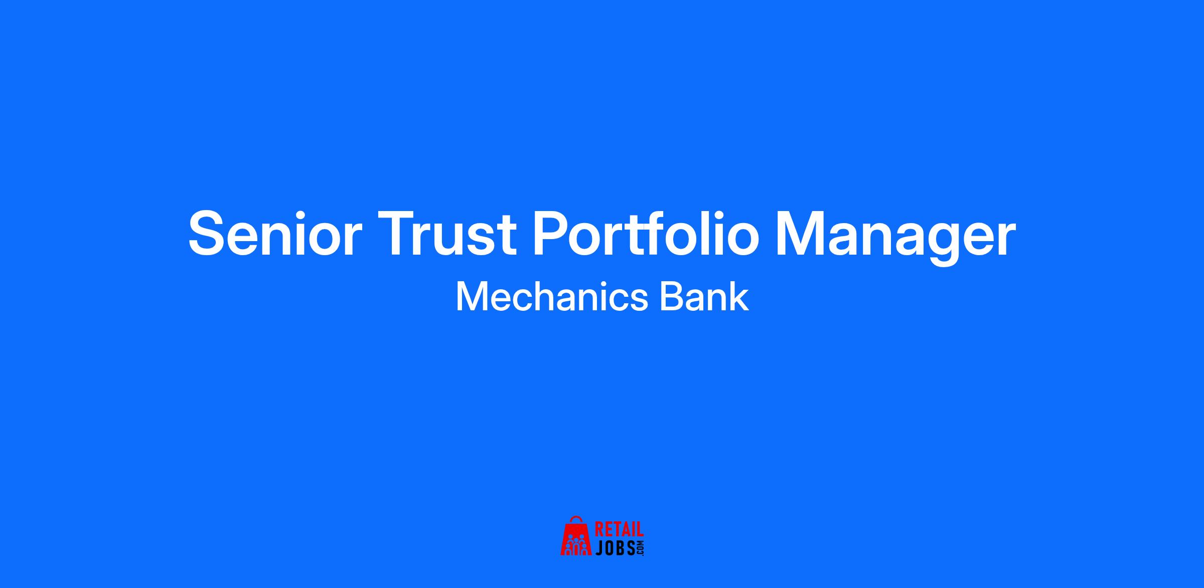 Mechanics Bank is currently searching for an Sr. Trust Portfolio Manager to join our team. Here at Mechanics Bank, we value connection, partnership, long term relationships and working together in person. This role will be working on-site at our Walnut Creek, San Francisco or Palo Alto offices. Manages the investment portfolios of complex investment management agency and trust accounts. Performs all primary client contact and support for activities in agency accounts to whom they are assigned. Collaborates with other members of the investment team to review investment research and conduct due diligence of securities utilized in portfolio construction. Keeps informed of economic and financial conditions affecting markets subject to investment. Actively involved in new business efforts by leading or attending prospect meetings. Seeks speaking opportunities and represents the Bank in civic and community events. What you will be doing: Responsible for delivering investment advisory services to investment management agency and trust accounts. Performs all primary client contact and support for activities in agency accounts and collaborates on trust accounts to whom they are assigned, including moderate travel to meet with clients in person, as necessary. Set Investment Policy Statements for client portfolios, monitors and manages portfolio to ensure asset allocations meet investment objectives and comply with document terms; documents concentrated holdings, including establishing and implementing plan to bring within policy guidelines, implementing trades for rebalancing as necessary. Collaborates with other members of the investment team to review investment research and conduct due diligence of mutual funds, stocks, bonds and ETF's utilized in portfolio construction. Responsible for all investment aspects of Reg. 9, including pre-acceptance reviews, annual investment reviews and account oversight. Serves as a member of the Trust Investment Committee, specifically to discuss investment-related issues and Reg. 9 investments reviews with committee members. Actively involved in new business efforts by overseeing, leading or attending prospect meetings. In rotation with other team members, drafts weekly market commentary for distribution to clients, prospects and centers of influence. Maintains extensive and regular contact with internal business partners, co-trustees, attorneys and accountants and provides advice and guidance with respect to investment policies and procedures. Seeks speaking opportunities and represents the Bank in civic and community events. Cultivates relationships with attorneys, CPAs and other centers of influence to enhance the reputation of the Bank and expand new business opportunities. Who you are: 7 or more years of investment experience in which consistent long term investment performance has met objectives. Bachelor degree highly preferred, additional experience will be considered in lieu of degree. Individual should have an in-depth understanding of investment management theory and ethics as well a comprehensive understanding of tax issues and trust and fiduciary laws; consistently apply existing risk management procedures and follow compliance directives; display solid judgment in managing financial contribution of assigned relationships with periodic oversight. Possess excellent human relations, communications and business writing skills. Possess effective time management and organizational skills. Able to cope with pressure resulting from meeting required deadlines and reporting requirements. Demonstrate teamwork in facilitating workflow. High level of cooperation with others and responsive to the Bank’s needs. Exemplary motivation, enthusiasm, and professionalism. High level of accuracy and great attention to detail. Strong analytical and problem solving skills. Able to make and support sound decisions. Consistently demonstrate tact, discretion and good judgment. Exhibit high degree of professionalism and confidentiality in handling and having access to sensitive customer or employee information. Demonstrate excellent customer service skills. Able to comprehend and interpret Bank policies and procedures. LI-AS1 Salary: $170,000-220,000 annually Final compensation package will be determined by the work experience, education, and/or skill level of the applicant along with internal equity and alignment with geographic market data. Mechanics Bank is an equal opportunity employer and all qualified applicants will receive consideration for employment without regard to race, color, sex, sexual orientation, religion, national origin, age, genetic information, veteran status, or on the basis of disability, gender identity, sexual orientation or other bases prohibited by applicable law. Please view Equal Employment Opportunity Posters provided by OFCCPhere. To learn more about Mechanics Bank’s California privacy and security policies, including your right to a Notice At Collection as a California Resident, please visit California Privacy Policy for Prospective Employees | Mechanics Bank J-18808-Ljbffr