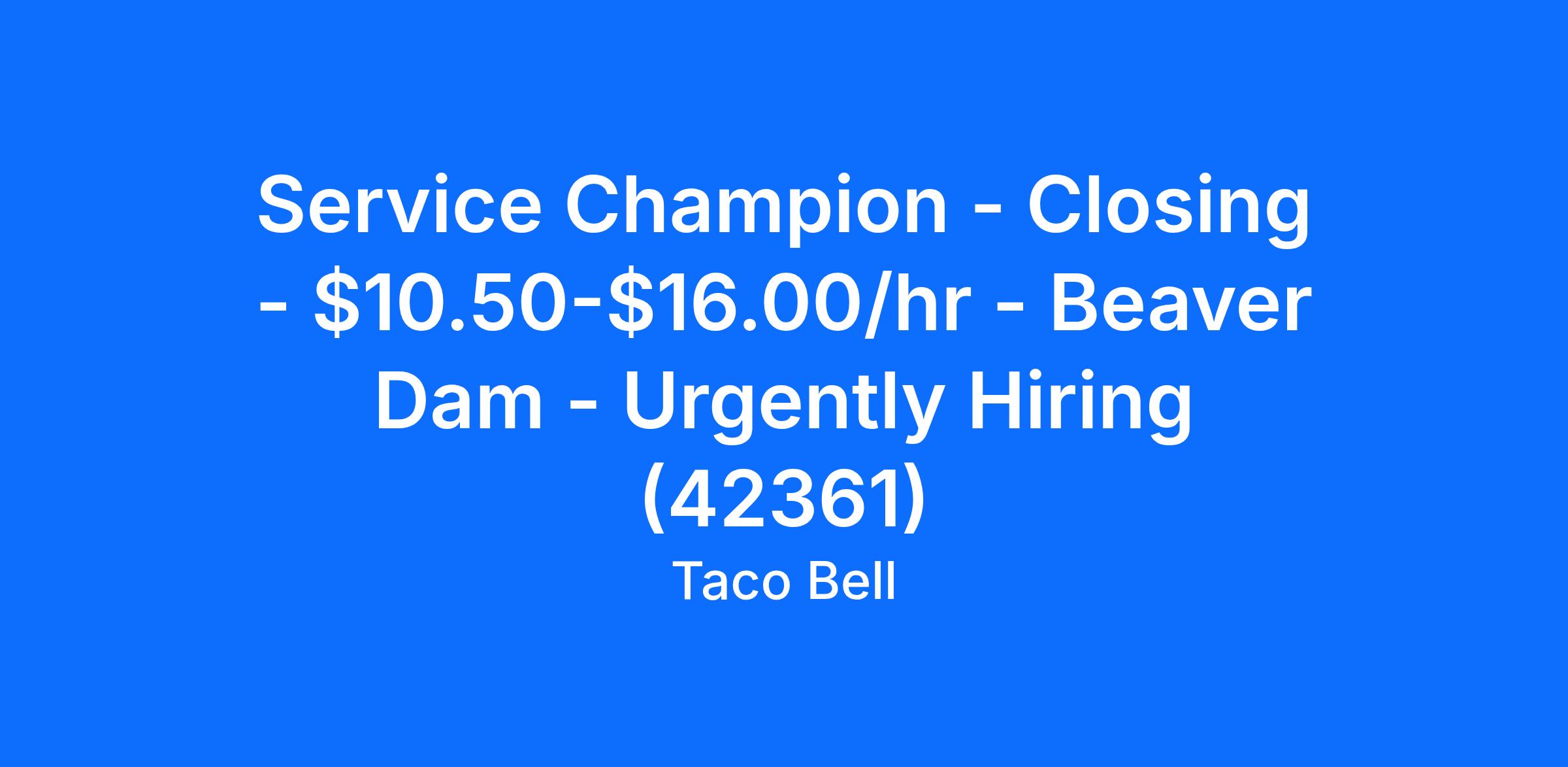 Service Champion - Closing - $10.50-$16.00/hr - Beaver Dam - Urgently Hiring (42361)