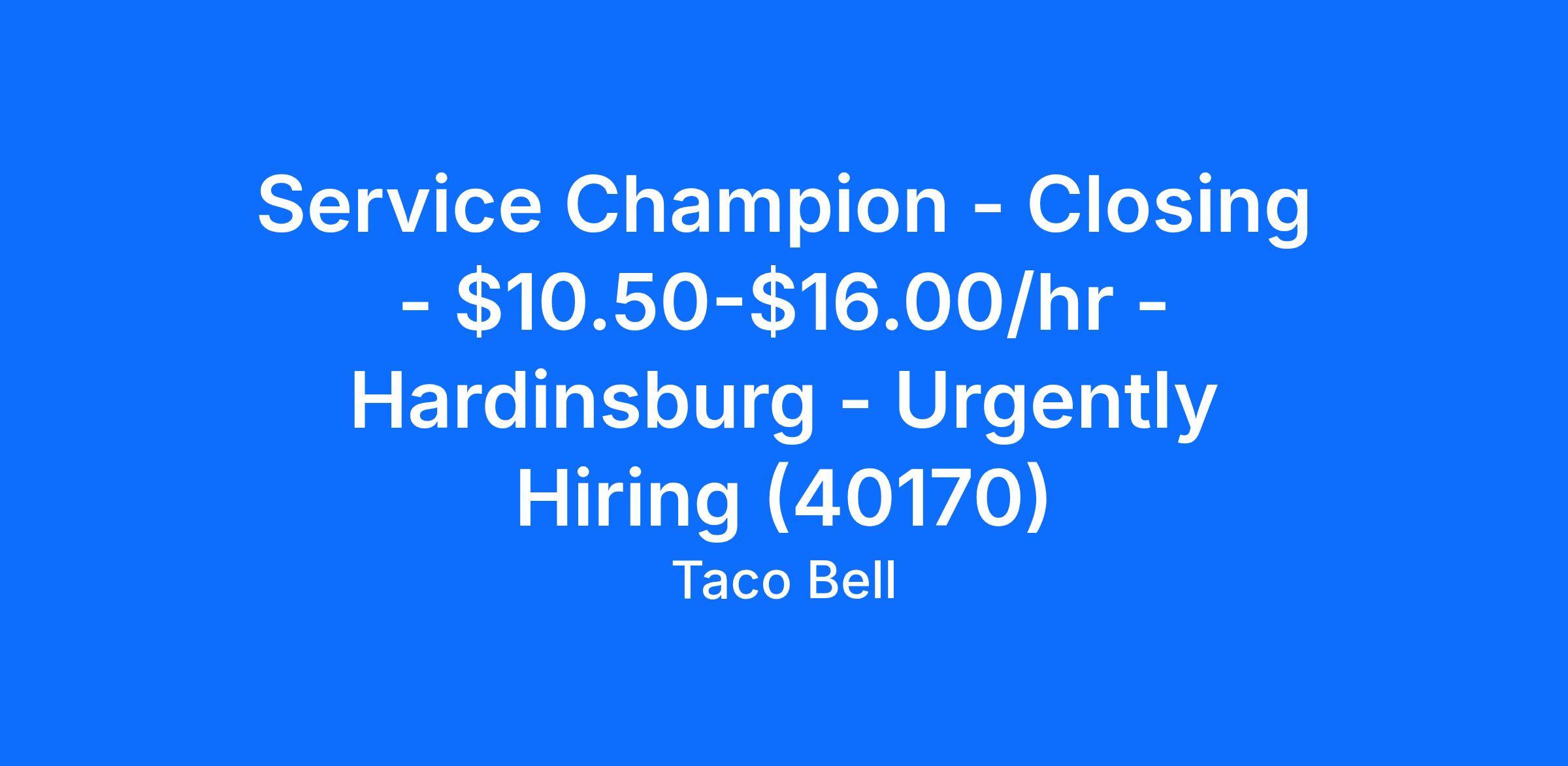 Service Champion - Closing - $10.50-$16.00/hr - Hardinsburg - Urgently Hiring (40170)