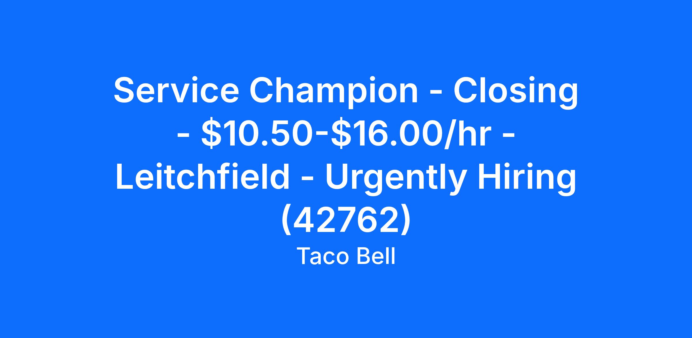 Service Champion - Closing - $10.50-$16.00/hr - Leitchfield - Urgently Hiring (42762)