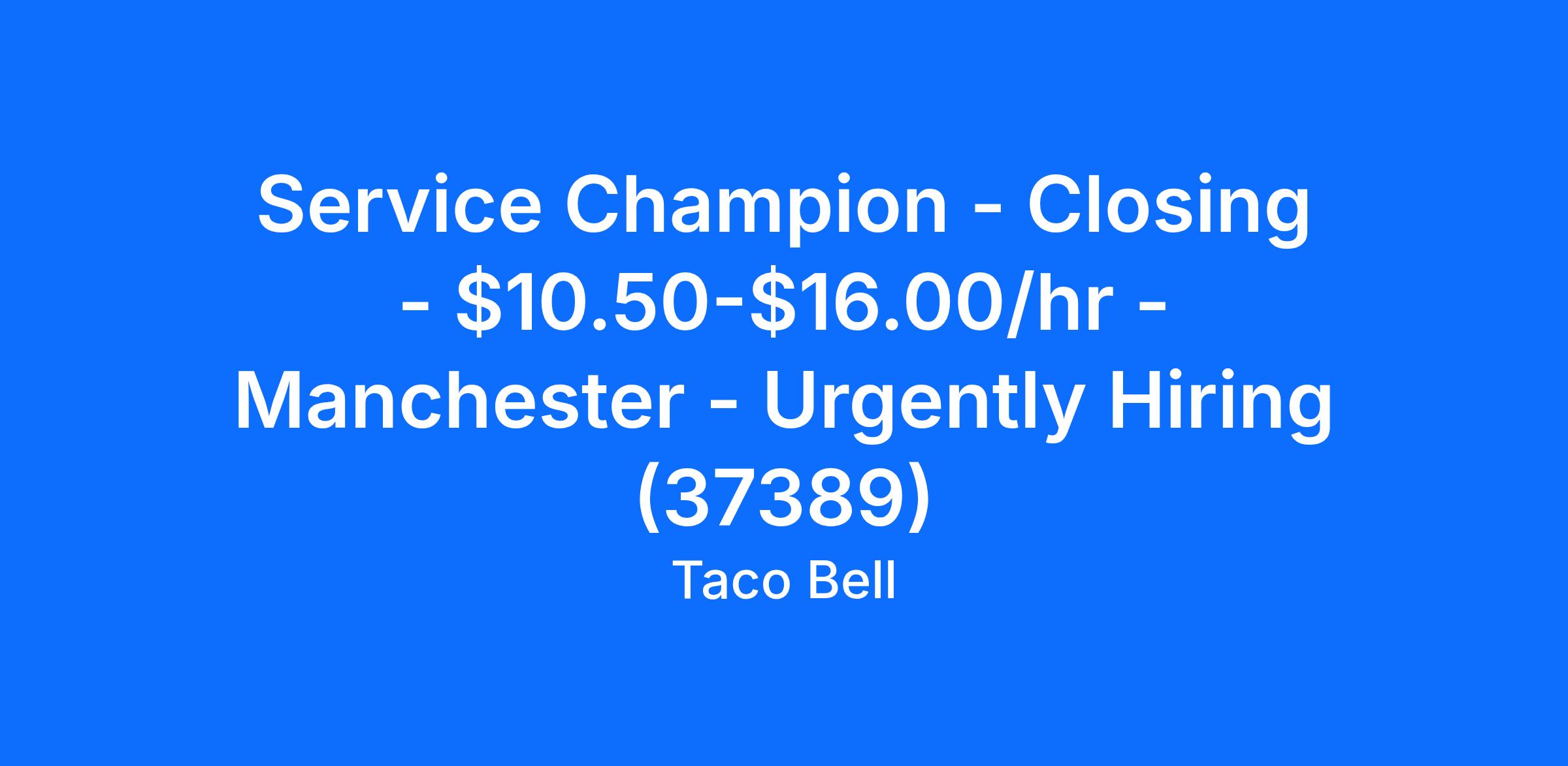 Service Champion - Closing - $10.50-$16.00/hr - Manchester - Urgently Hiring (37389)