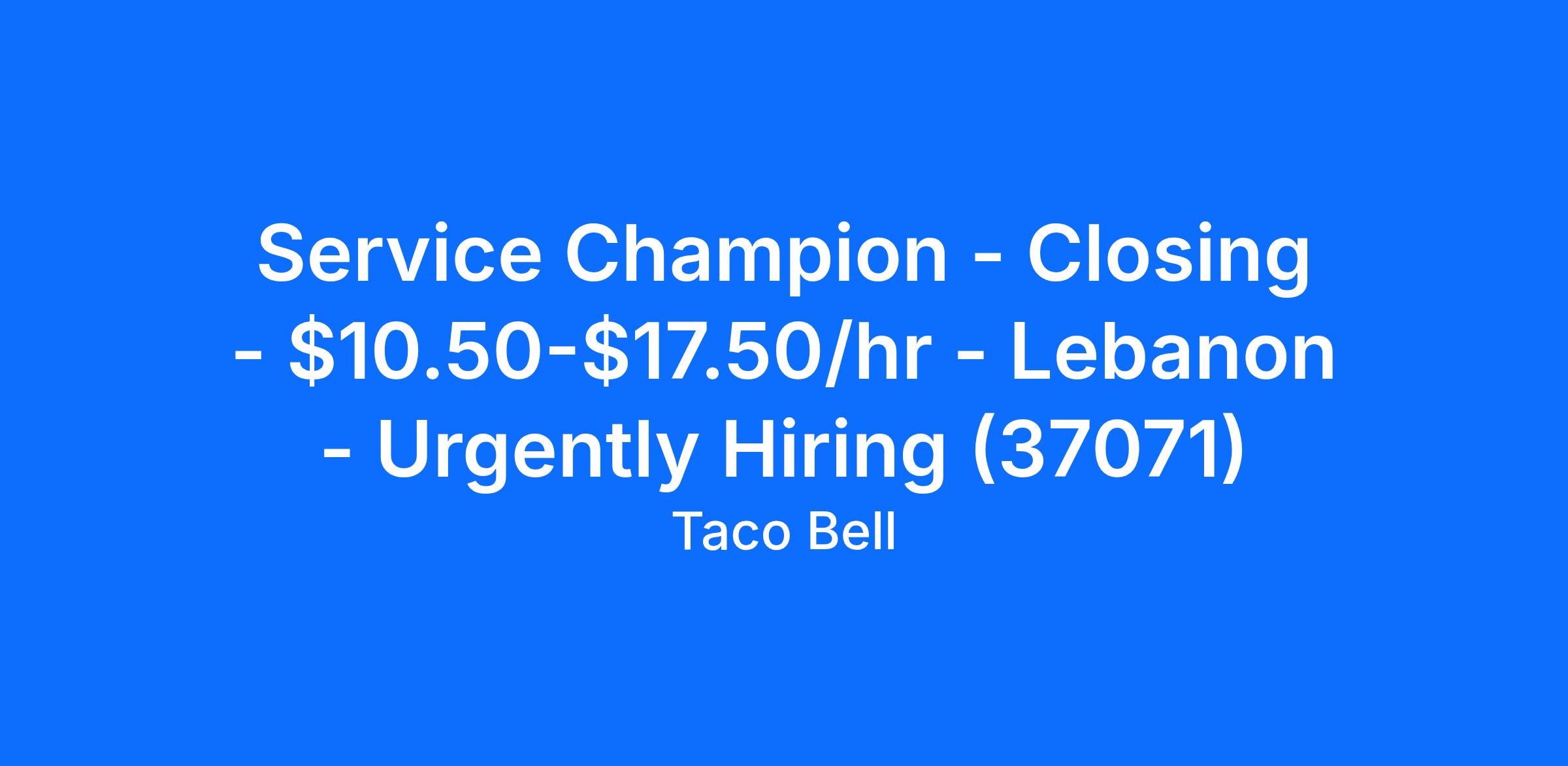 Service Champion - Closing - $10.50-$17.50/hr - Lebanon - Urgently Hiring (37071)