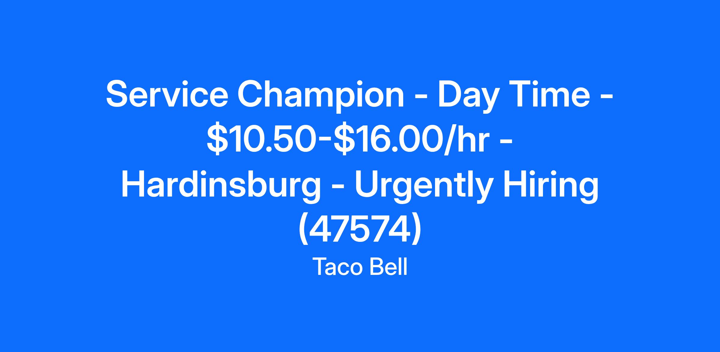 Service Champion - Day Time - $10.50-$16.00/hr - Hardinsburg - Urgently Hiring (47574)