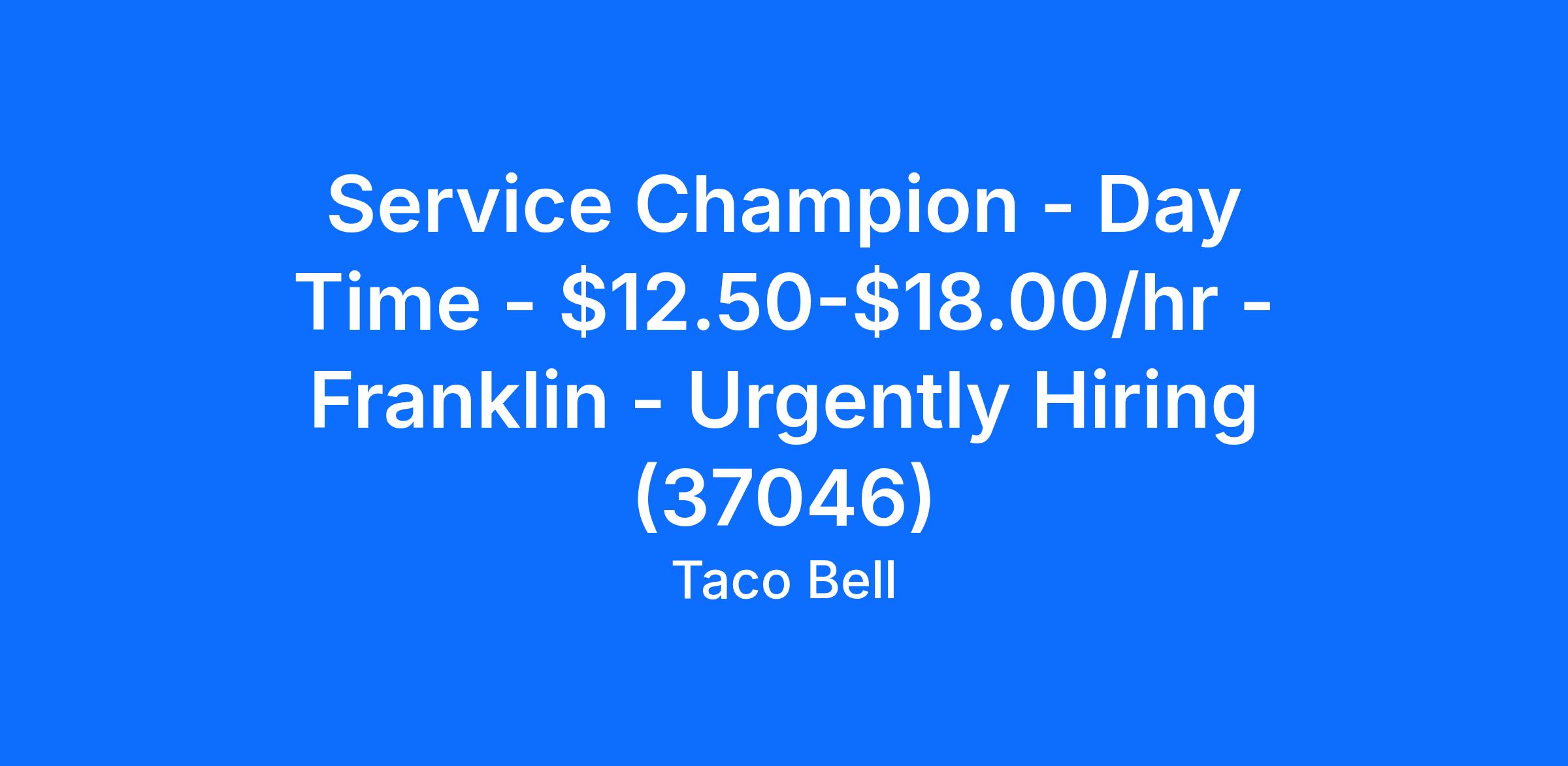 Service Champion - Day Time - $12.50-$18.00/hr - Franklin - Urgently Hiring (37046)