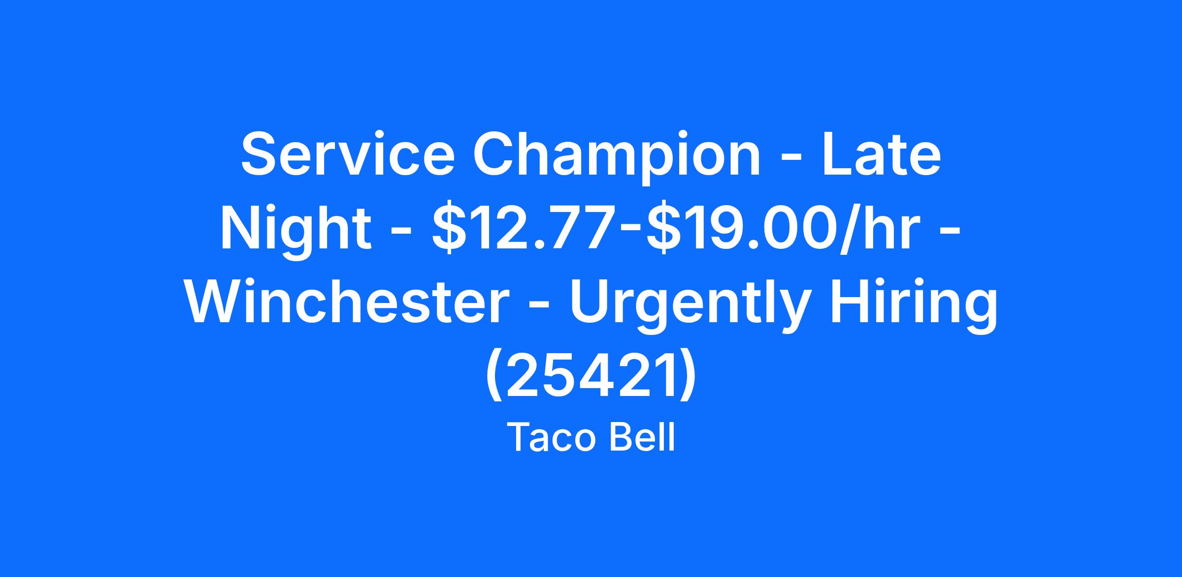 Service Champion - Late Night - $12.77-$19.00/hr - Winchester - Urgently Hiring (25421)