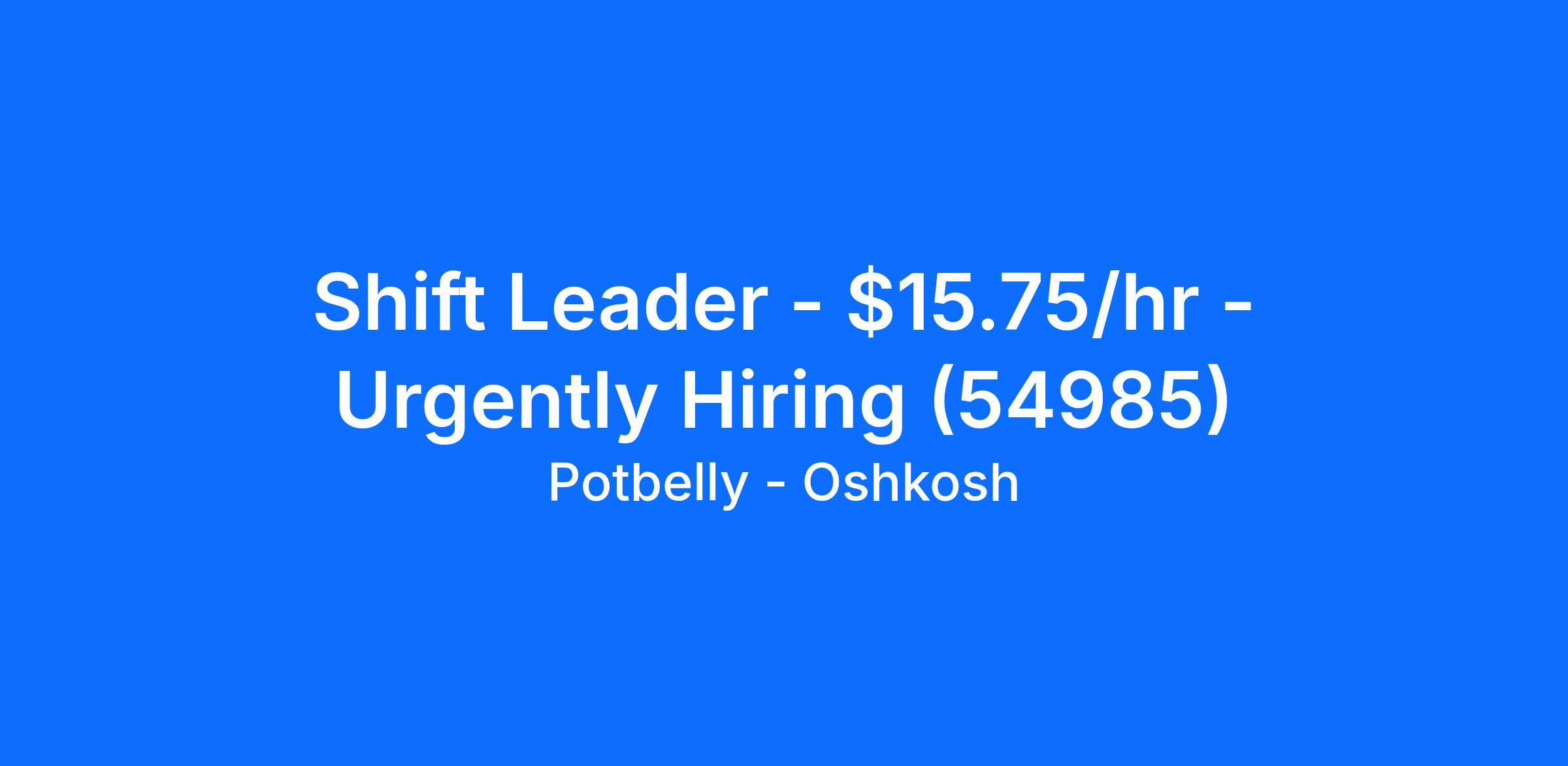 The Shift Leader leads and behaves according to Potbelly values. They will lead a shift by managing and developing associates to execute outstanding product quality and customer service, build sales and control costs for each shift.