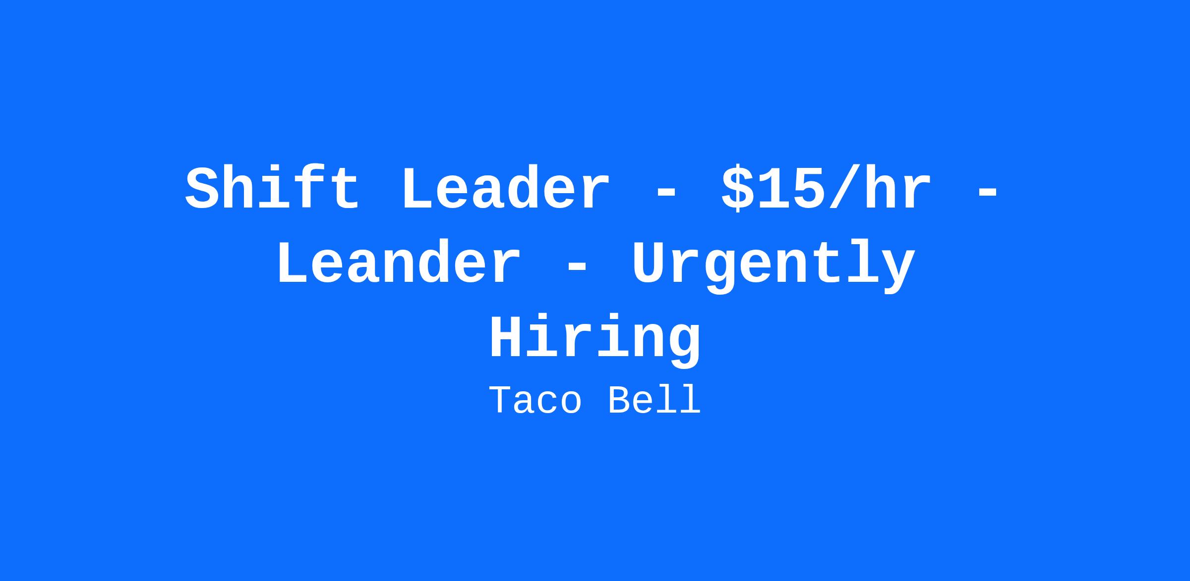 Shift Leader - $15/hr - Leander - Urgently Hiring