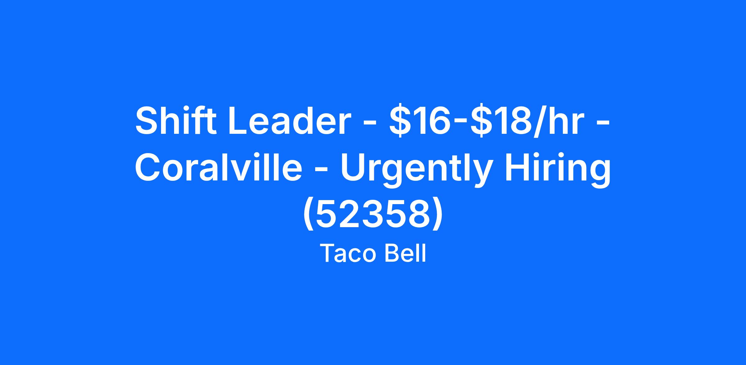 Shift Leader - $16-$18/hr - Coralville - Urgently Hiring (52358)