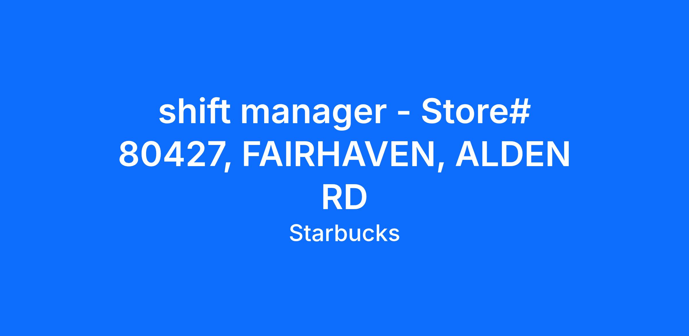 We believe in creating a warm and welcoming space where every cup of coffee sparks connection. Every shift is a chance to brighten someone's day. As a shift manager you will lead with purpose and prepare for the next step in your Starbucks journey.Through hands-on experience, mentorship, and training, you'll learn to run a multi-million dollar business, lead a team, and create a welcoming space for your community.
