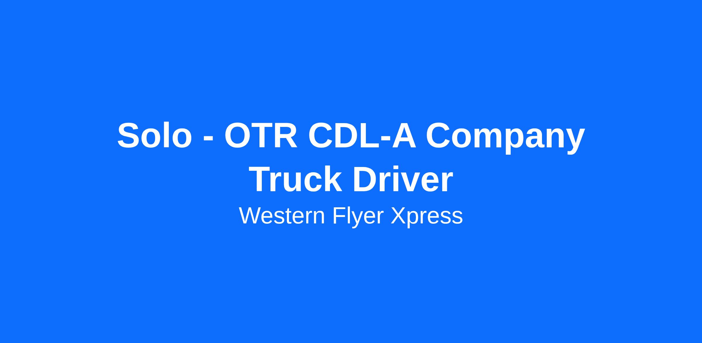 Solo - OTR CDL-A Company Truck Driver