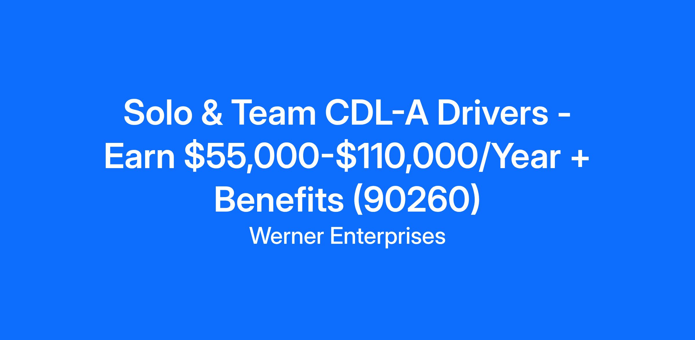 Solo & Team CDL-A Drivers - Earn $55,000-$110,000/Year + Benefits (90260)