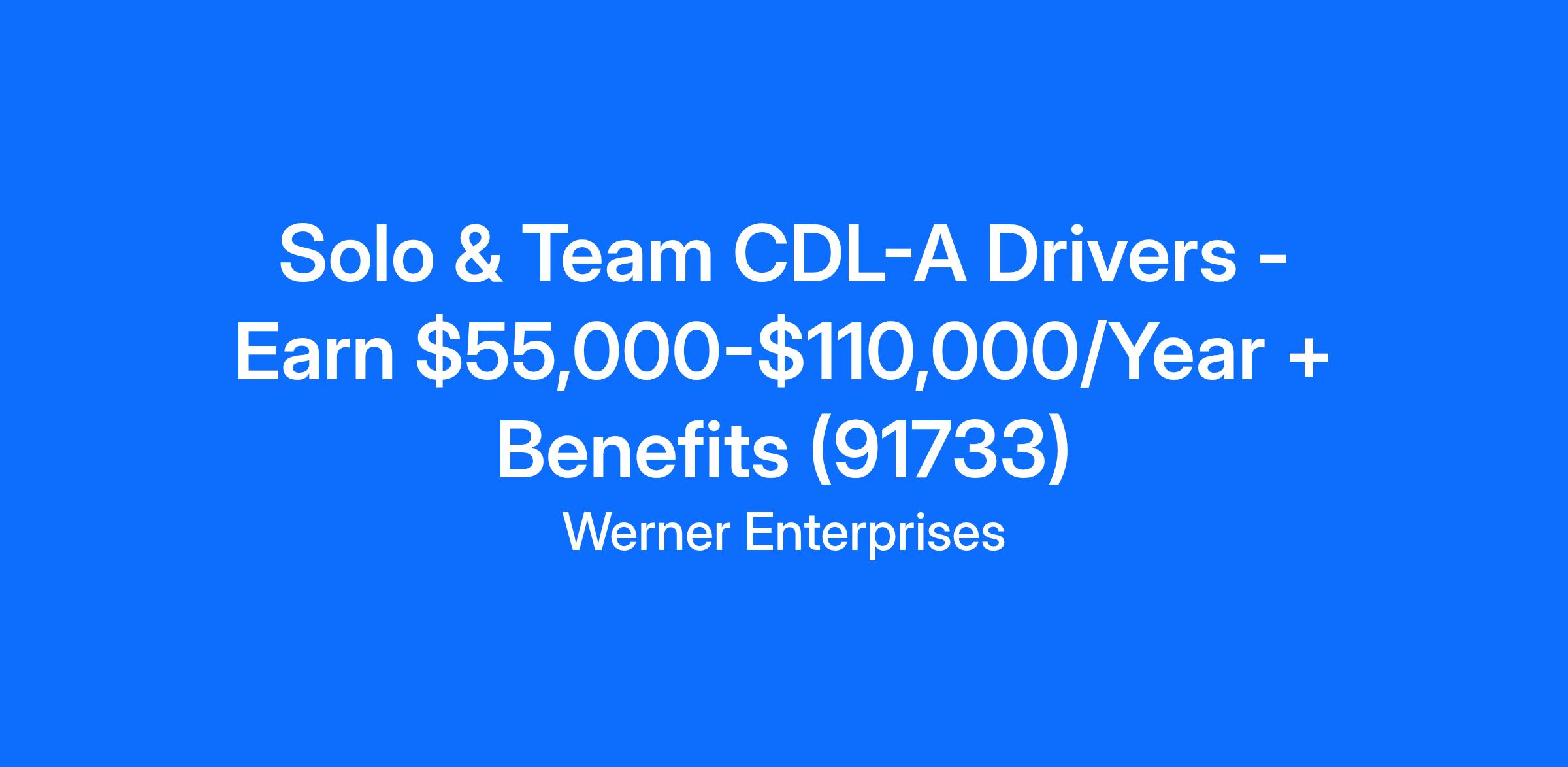 Solo & Team CDL-A Drivers - Earn $55,000-$110,000/Year + Benefits (91733)