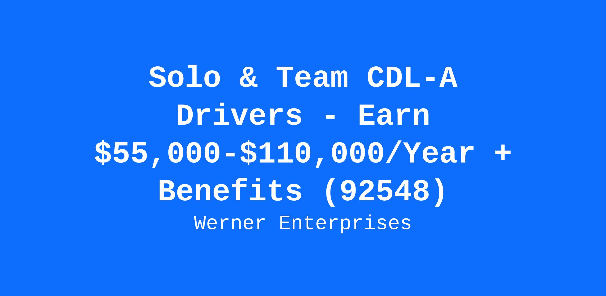 Solo & Team CDL-A Drivers - Earn $55,000-$110,000/Year + Benefits (92548)
