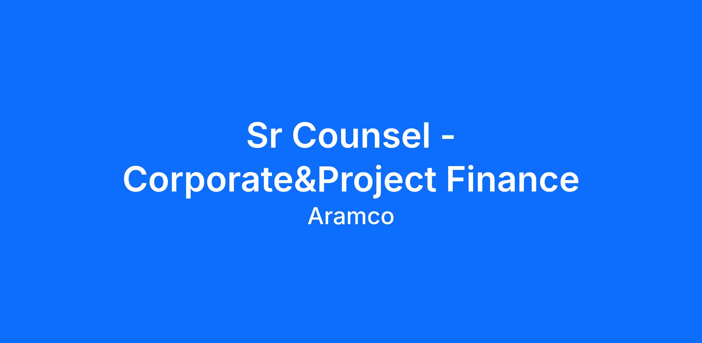 We are seeking an experienced attorney (Sr Counsel) to join the Corporate&Project Finance Legal Practice of the Project Development&Finance Department in the Aramco Law Organization.