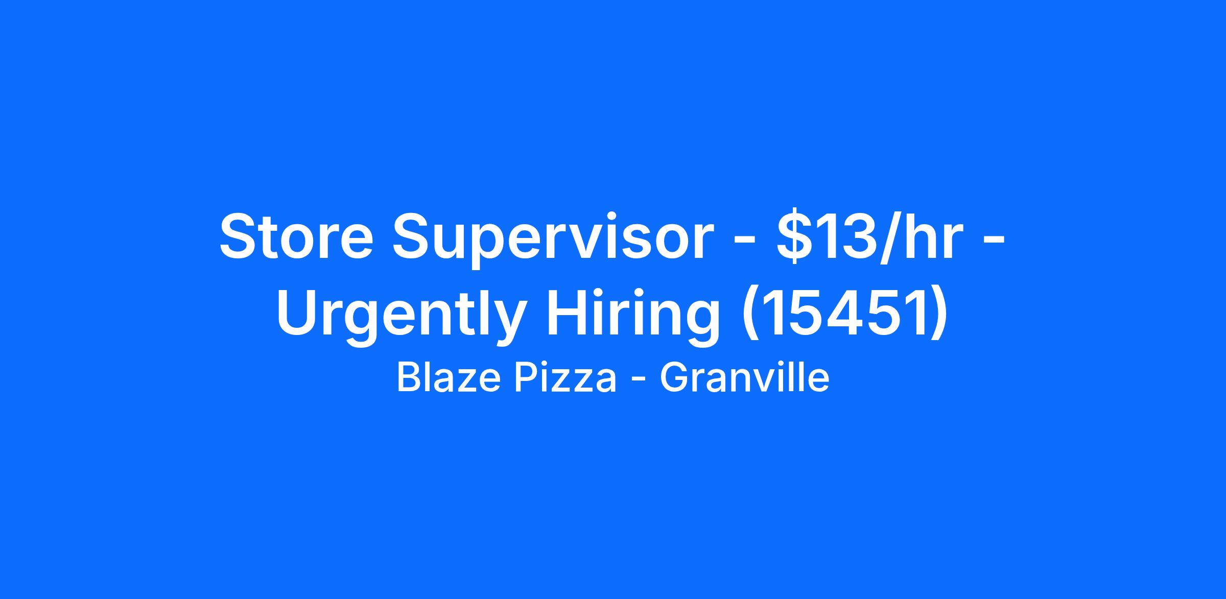 Store Supervisor - $13/hr - Urgently Hiring (15451)