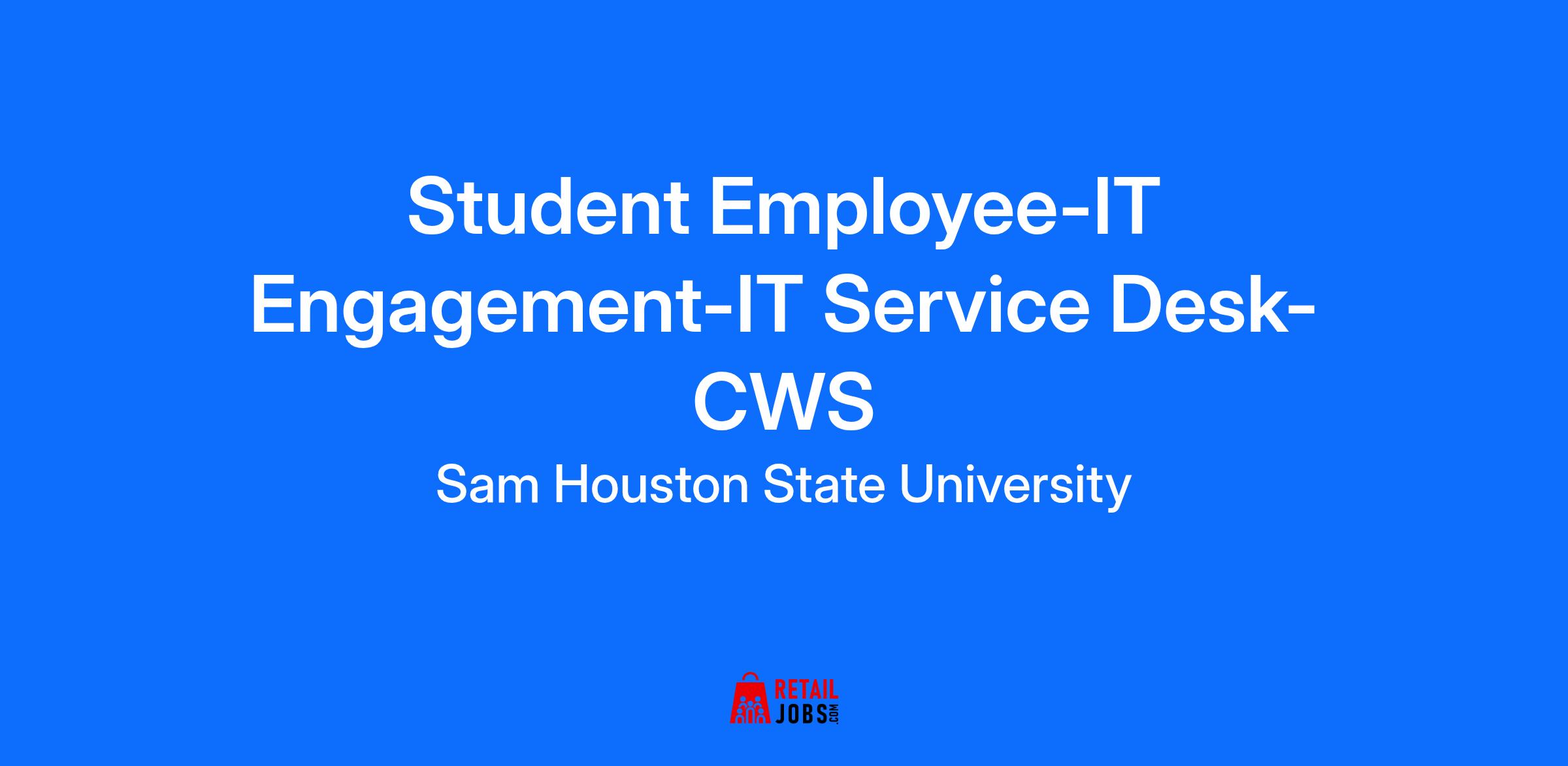 *Requisition:*202500323ST *Title:*Student Employee-IT Engagement-IT Service Desk- CWS *Employee Class:*Student Employee *College Work Study Position:*Yes *Department:*IT Engagement *Division:*Information Technology *Hours per week:*20-26 *Hiring Rate:*$10.00 *Preferred Student Classification:*Freshman, Sophomores, and Juniors *Nature & Purpose of Position:NATURE & PURPOSE OF POSITION: *Provide front line, Tier 1 support via telephone, e-mail, in person, remote, and chat support to internal and external clients. *SUPERVISION GIVEN & RECEIVED: *Receives general supervision and mentoring from Service Desk Manager and full-time technicians. Serve as a mentor and source of support for other student workers. *PRIMARY RESPONSIBILITIES*. * Provide timely, consistent, and quality technical support for SHSU constituents experiencing technology issues and maintain accurate and thorough records of all interactions. * Maintain confidentiality and security of data observed in carrying out job duties. * Participate in, and provide recommendations for on, Service Desk continuous improvement efforts to better meet client or university needs. * Write/Maintain Review documentation and/or flag for correction of knowledge articles using the IT Knowledge Base. * Resolve incidents or fulfill service requests following the established policies and procedures while meeting the established Service Level Agreements or Operation Level Agreements. * Actively participate in a collaborative team environment where ideas, resources, knowledge and mutual respect are shared. * Other duties as assigned. *OTHER SPECIFICATIONS:* Must be able to work 20 to 26 hours per week. The Service Desk is often an environment in which the employee will be exposed to fast-paced working conditions. The employee must be willing to accommodate these varying situations in addition to possessing the following essential skills: * Good customer service, communication, and problem-solving skills. * Dependability. * Team-oriented. *Other Requirements for the Position:EDUCATION & EXPERIENCE REQUIREMENTS: *Must be a current SHSU student enrolled in a minimum of six (6) semester hours with a SHSU GPA of 2.5 or greater. Must be able to demonstrate basic computer competencies and knowledge. IT, Service Desk or customer service job experience preferred. A combination of education, experience, and training that would produce the required knowledge and abilities could be considered. International Students – please visit the following website for more information on employment requirements and eligibility: [https://www.shsu.edu/dept/global-engagement/international-students-and-scholars/employment.html](https://www.shsu.edu/dept/global-engagement/international-students-and-scholars/employment.html). *Open Date:*08/08/2025 *Contact Name & Title:*Norma Vazquez *Contact Phone:*(936) 294-1950 *Contact Email:*nev001@shsu.edu *Contact Building & Room :*AB1 145 *EEO Statement:*Sam Houston State University is an Equal Employment Opportunity Employer and Smoke/Drug-Free Workplace. All qualified applicants will receive consideration for employment without regard to race, creed, ancestry, marital status, citizenship, color, national origin, sex, religion, age, disability, or protected veteran status. The University takes seriously the initiative to ensure equal opportunity in the workforce and to comply with Title VII as interpreted by the U.S. Supreme Court. Sam Houston State University is an “at will” employer. Employees with a contract will have additional terms and conditions. Security-sensitive positions at SHSU require background checks in accordance with Education Code §51.215. [Annual Security and Fire Safety Report](https://www.shsu.edu/dept/public-safety/upd/annual.html)